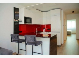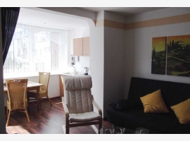 Das Apartment verfügt über ein Wohnzimmer, eine Küche, ein Badezimmer mit einem Eckbadewanne und Flur. Das Wohnzimmer hat ein neues Schlafsofa, Couchtisch, großer Esstisch, Kleiderschrank. ...