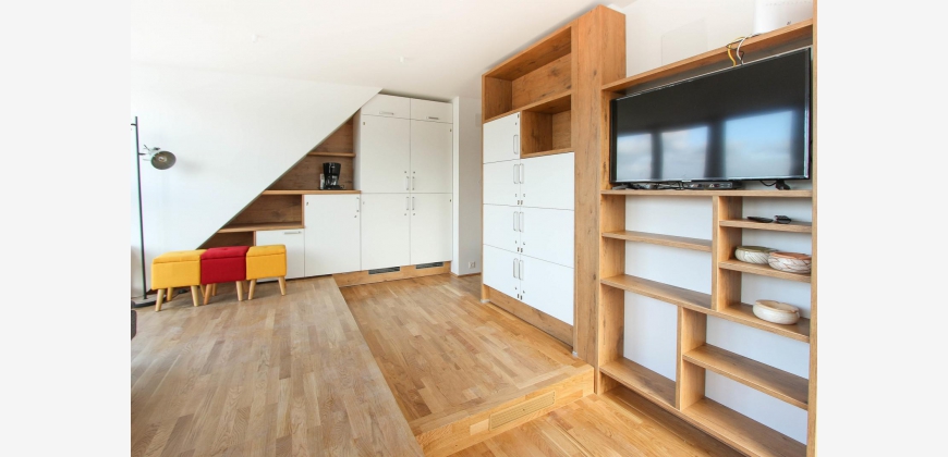 - voll ausgestatteter Co-Living Bereich mit Fernseher und Boxen, eigener Kühlschrank
