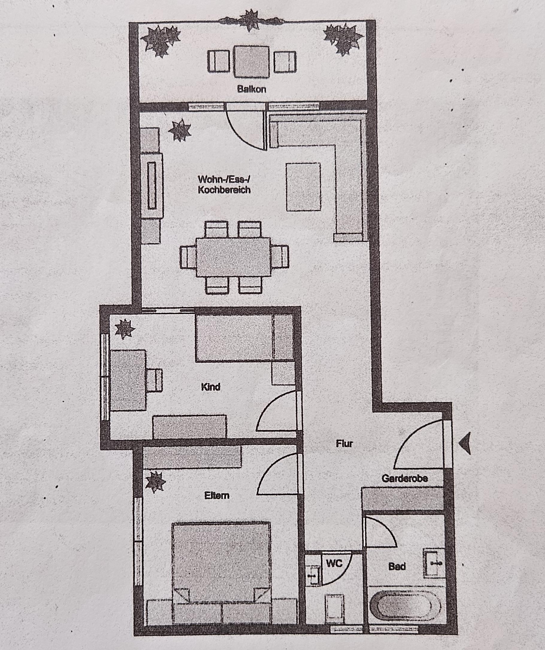 Komplett ausgestattete Wohnung
