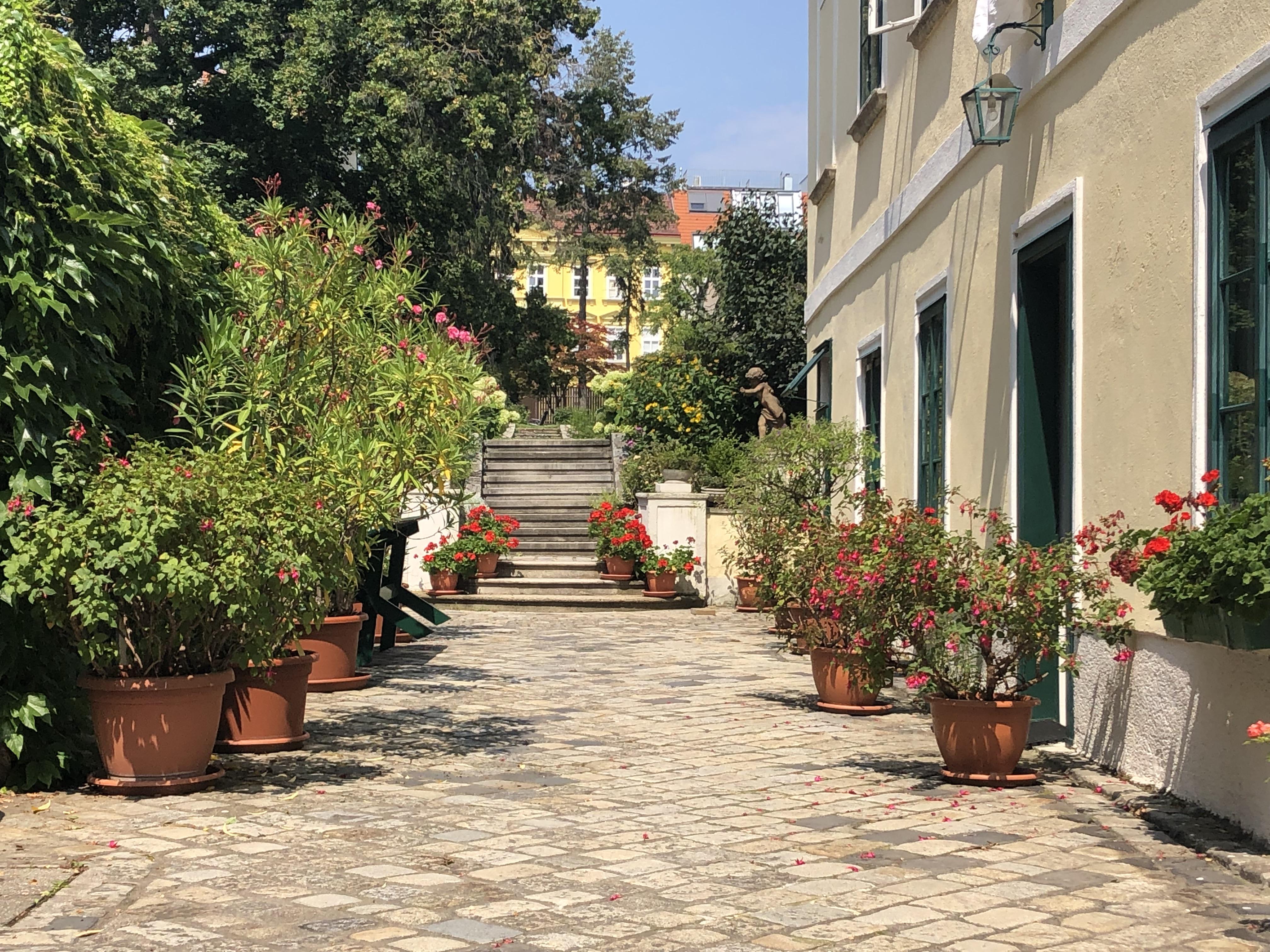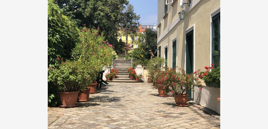 Sowie eine Café-ähnlich gestaltete gemütliche Küche und einen traumhaften Innenhof mit Garten.
