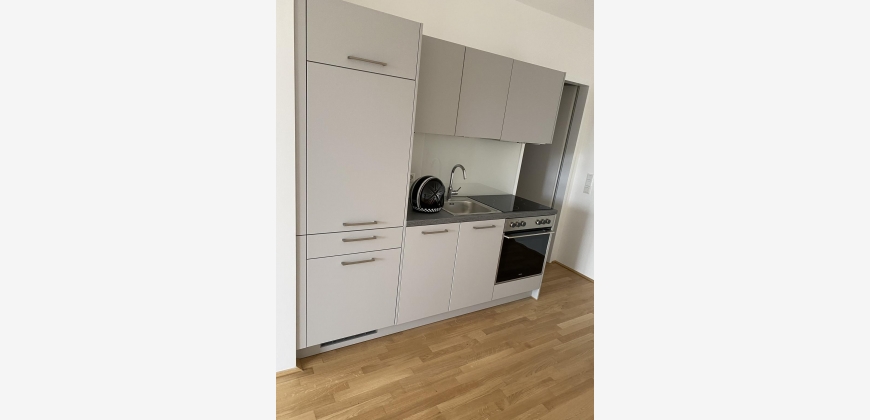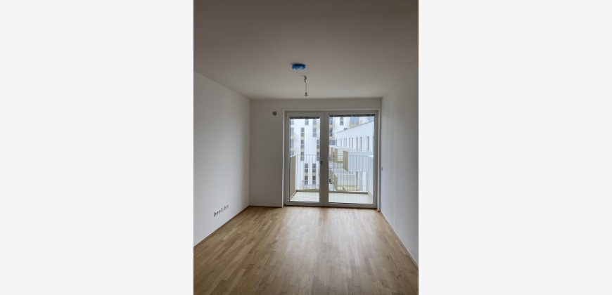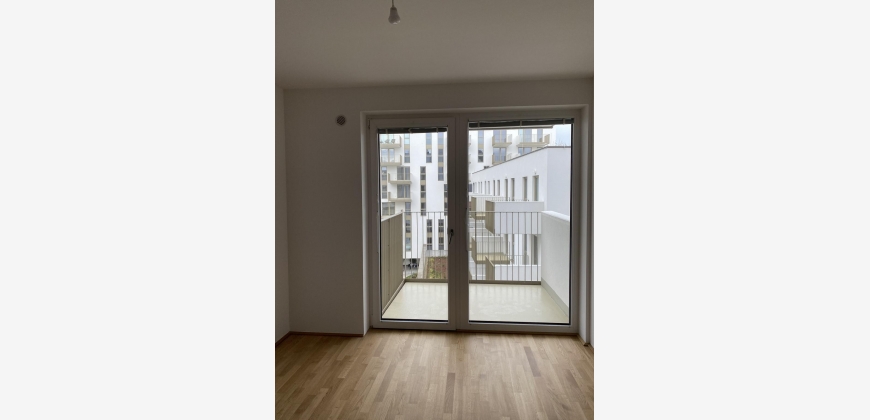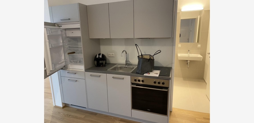 Die Wohnung befindet sich im 4.Obergeschoss und ist durch bodentiefen Fenster und einem hellen Parkettboden besonders hell und freundlich. Die offene Wohn-Essküche verfügt über eine moderne, in hellgrau gehaltene Küchenzeile, welche mit hochwertigen E-Geräten vollausgestattet ist. Dem Wohnbereich ist ein großzügiger Balkon mit Blick in den Innenhof angeschlossen. Das grosszügige Wohnzimmer mit einer offene Küche und das Schlafzimmer sind mit bodentiefen Fenstern ausgestattet.