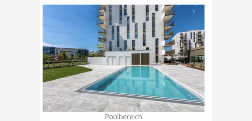 Als Mieter dieser hochwertigen 2-Zimmerwohnung genießen Sie die Vorzüge eines exklusiv nur für ADELE-Mieter zugänglichen Pools, ein In-House-Fitnessstudio sowie eine Gemeinschaftsdachterrasse mit Blick über ganz Wien.