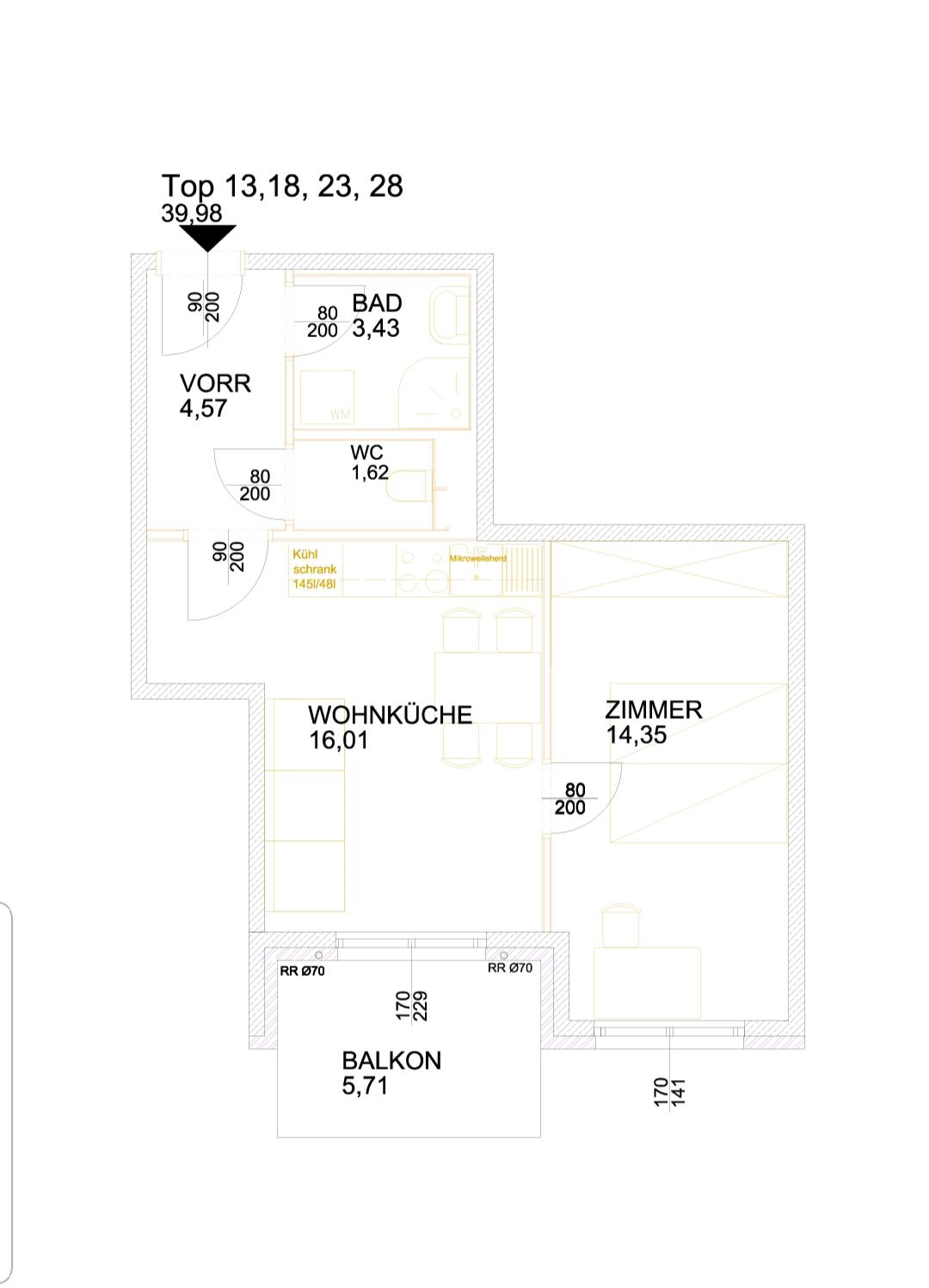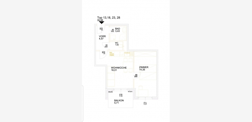 Nutzfläche 45,7 m2 (39,96 m2 Wohnfläche + Balkon 5,7 m2)