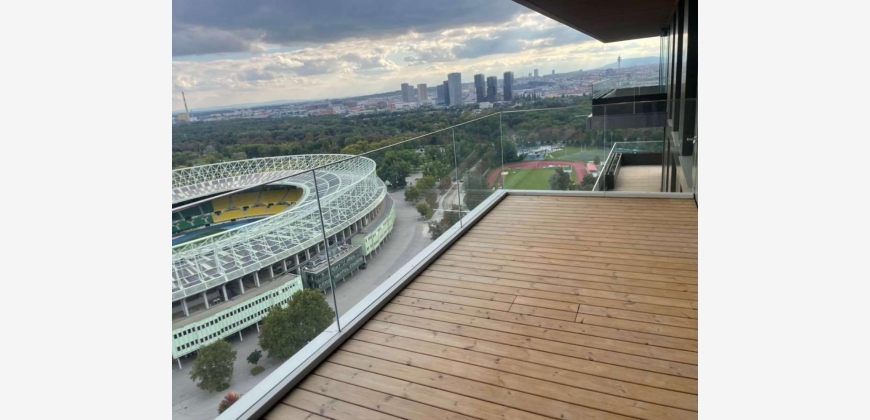 Helle 3-Zimmer-Wohnung mit offener Küche, Bad, separatem WC und Loggia im modernen Wohnhochhaus Grünblick. Rooftop-Pool, Sauna, Fitness, Urban Gardening und Concierge-Service inklusive. Top Lage direkt beim Wiener Prater mit perfekter Anbindung an U2 und Innenstadt.