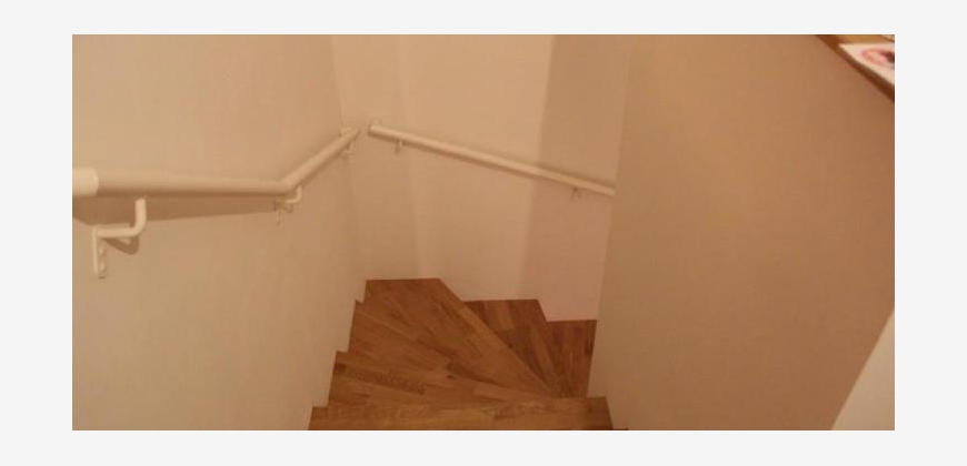 Aufteilung: untere Etage: Vorraum, WC, Abstellraum. Obere Etage: Wohnzimmer mit möbliertem Küchenbereich, Loggia, zwei Zimmer, Badezimmer (mit Badewanne, Waschmaschinenanschluss und WC), Gang. Kellerabteil vorhanden.