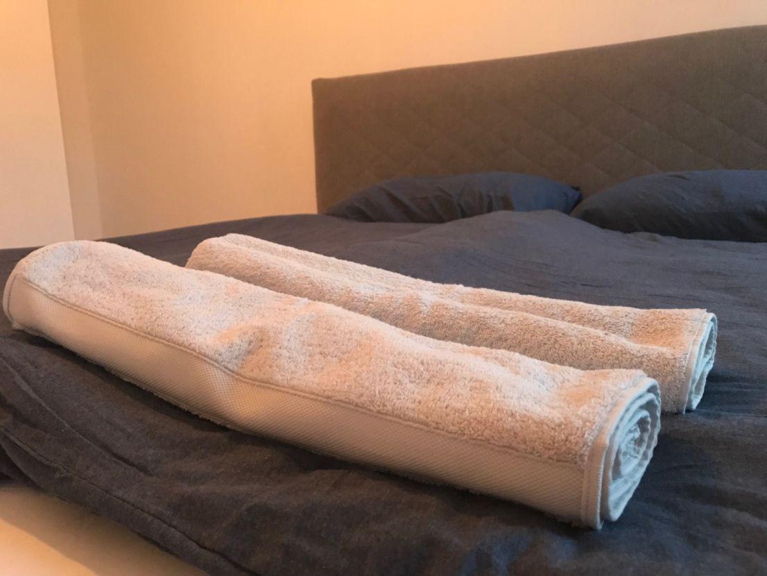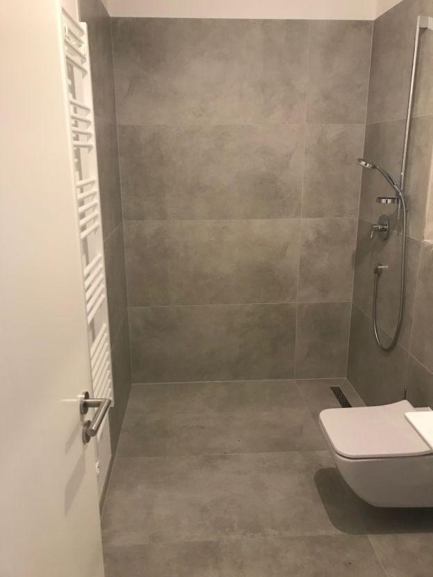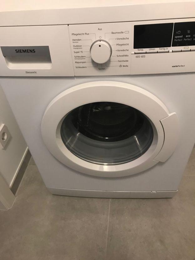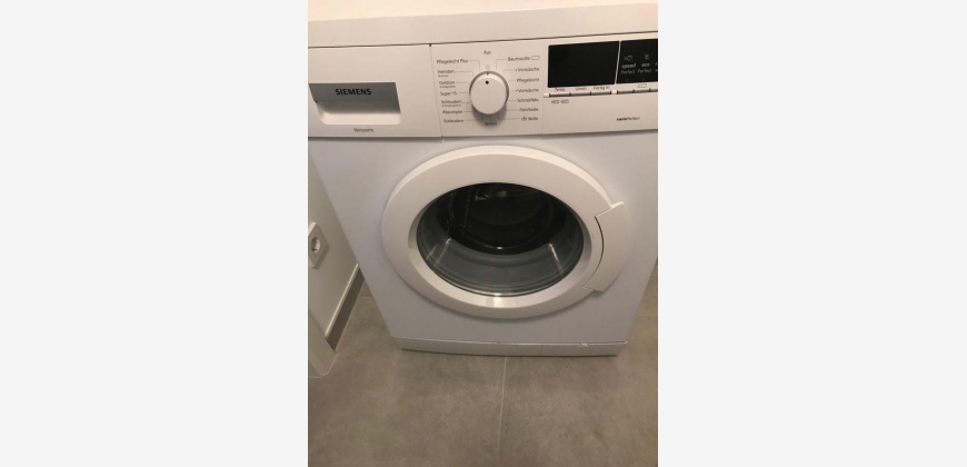 - Badezimmer mit Badewanne, Handtuchtrockner und Waschmaschinenanschluss