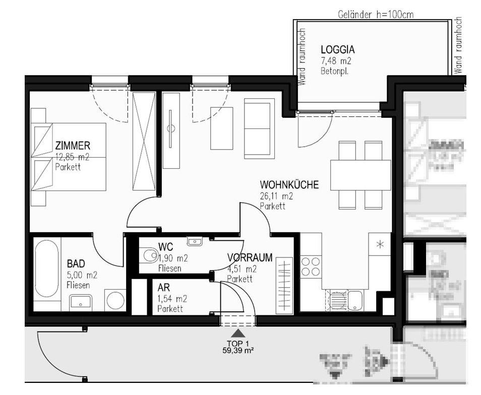 Die Anmietung eines Garagenplatzes in der hauseigenen Garage für EUR 95,- ist möglich.