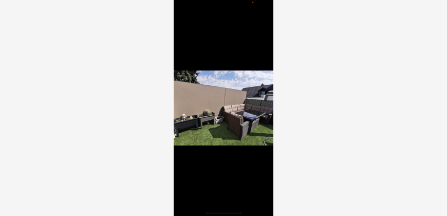 •verlängerte Maßangefertigte Glasduschwand •Gartenrattanmöbel, Glastisch, Sonnenschirm