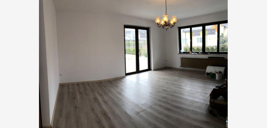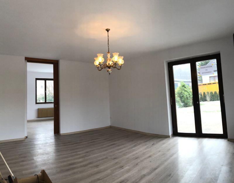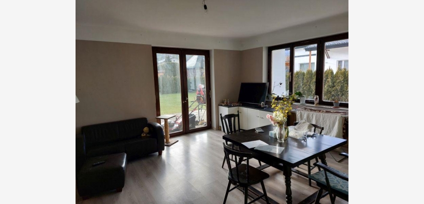 Die Wohnung wird über einen idyllischen, eigenen Eingang mit einem Rosenstrauch erreicht und weist eine Wohnfläche von ca.93m2 auf. Die sehr gute Raumaufteilung stellt sich folgendermaßen dar: Großzügiger Eingangsbereich (=zentraler Vorraum), Schlafzimmer, Badezimmer, WC, Küche mit angrenzender Speis/Abstellraum, südseitiges lichtdurchflutetes Esszimmer und geräumiges, helles Wohnzimmer mit ebenem Direktausgang auf die große südseitige Terrasse und den neu angelegten Garten. Das Haus ist voll unterkellert. Bei der Heizung handelt es sich um eine Luft-Wasser-Wärmepumpe von Daikin, die vom KG aus beide Etagen versorgt. Das Warmwasser für Bad und Küche wird mit einem neuen E-Boiler erzeugt.
