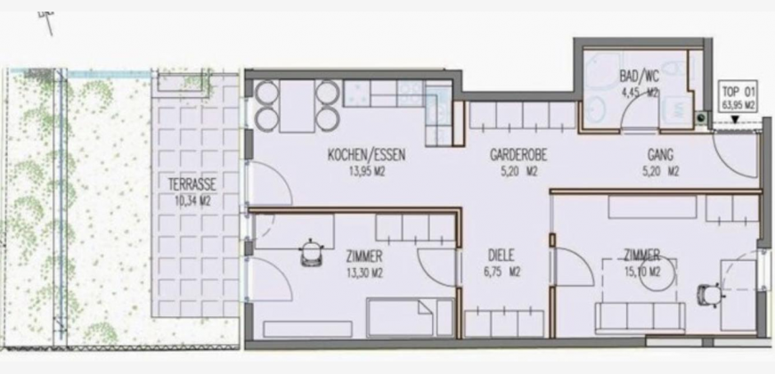 Gesamtmiete inkl. Betriebskosten: EURO 685,-