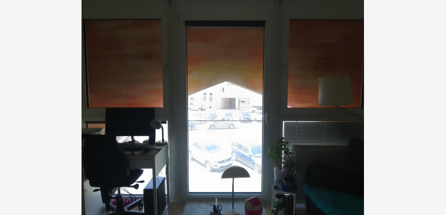 Sonne und Helligkeit bringen die zwei französischen Balkone und die großen Fenster in die Wohnung. Die geschützte Außenmauer ist mit einer wunderschönen Malerei versehen. Im Wohnzimmer mit einem Sonnenaufgang, im Schlafzimmer ein Nachthimmel. Rollos bringen nachts Verdunkelung. Die Küche ist voll ausgestattet, auch Elektrogeräte (Elektroherd, Luftabzug, Backrohr, Kühlschrank) sind im Mietpreis enthalten.