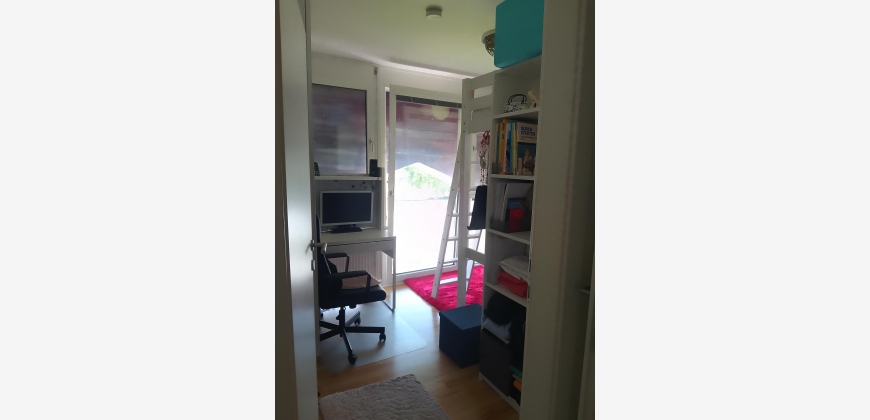 Schlafzimmer: Hochbett (140cm Breite), Einzelbett aus Holz, 2 Bücherregale, einen großen Eckkasten, Schreibtisch mit Aufsatz, Großer Paxkleiderschrank, Hängemöglichkeit hinter der Tür