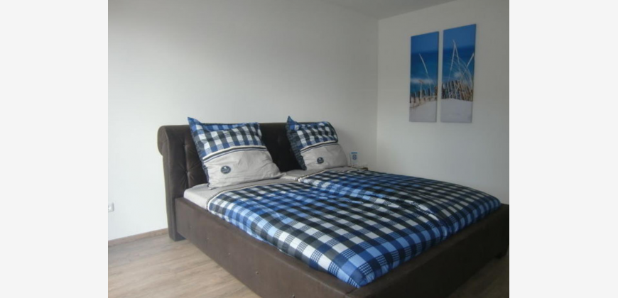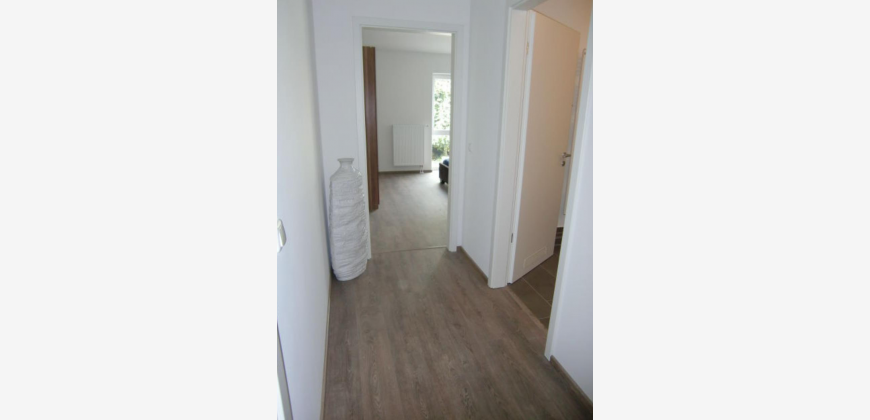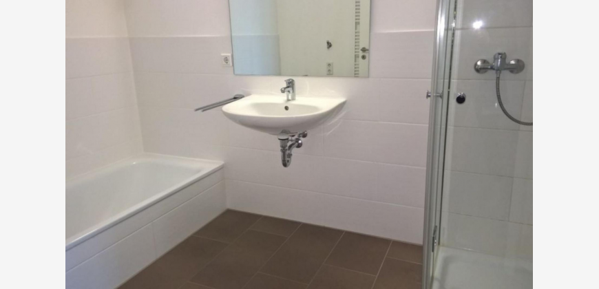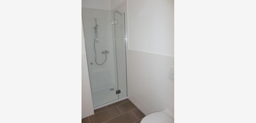 Neubauwohnung, dritter Liftstock mit Balkon, Wohnzimmer mit leicht abgetrennt Einbauküche und kleinem Essbereich, 2 vollwertige Schlafzimmer