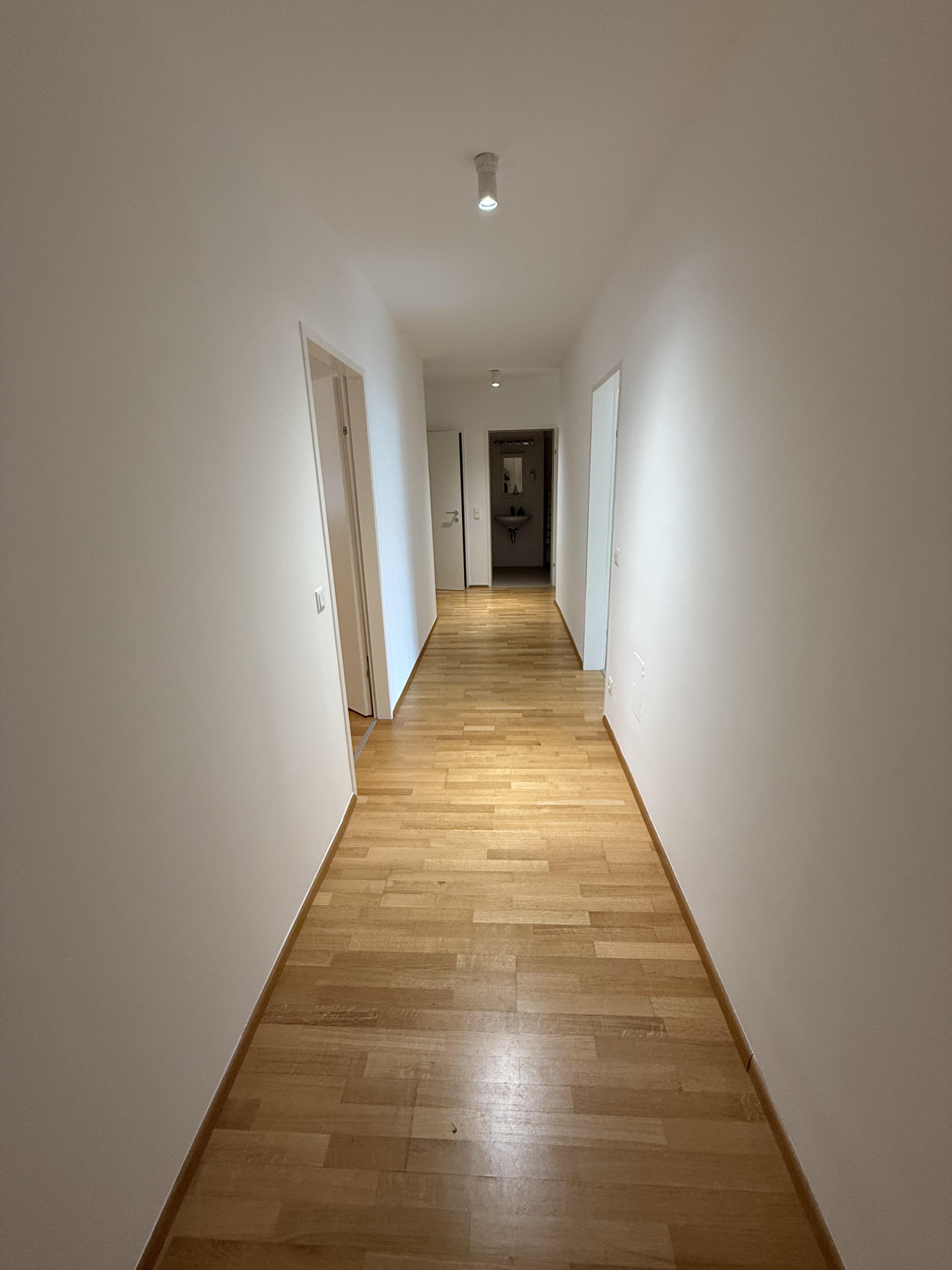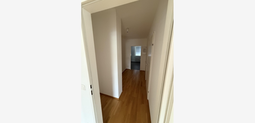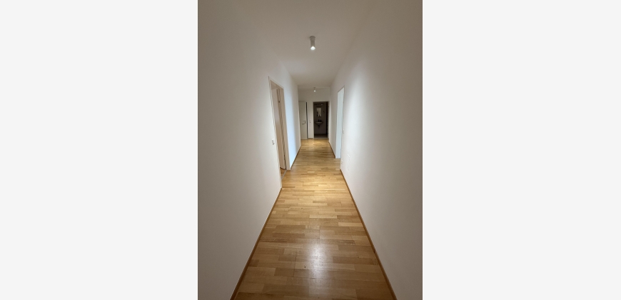 Zimmeraufteilung: Vorzimmer (großzügiger Gang), Wohnküche, drei Zimmer, Kochnische, Badezimmer, WC und Abstellraum.
