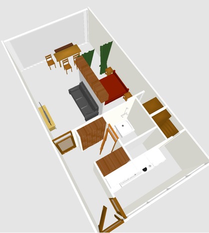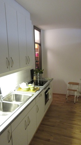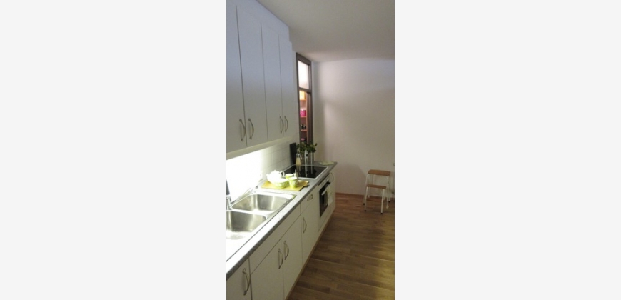 Die Wohnung ist renoviert und befindet sich talseitig im 2.Stock. Das Objekt besteht aus einem Vorraum, einer Küche mit Einbauküche mit Herd, Backrohr und Kühlschrank und einer Speisekammer od. Abstellraum. Einem Badezimmer mit Dusche und WC, einen großem Wohnzimmer und Schlafraum und kleinen begehbaren Schrank.