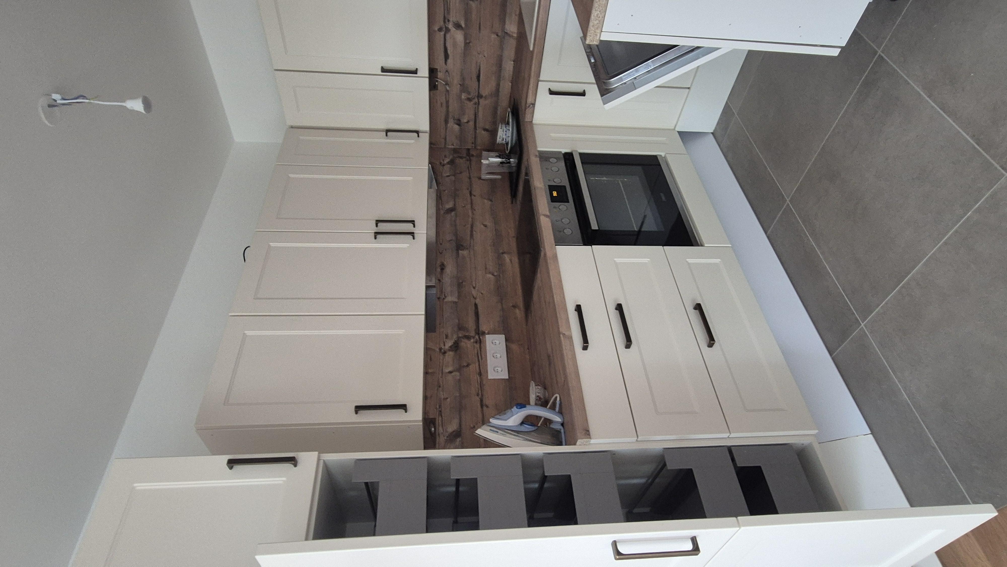 + U-förmige "DAN"-Küche inkl. elektrischer Geräte (Kühlschrank-Gefrierkombi, Cerankochfeld, Backofen, Geschirrspüler, Dunstabzug)