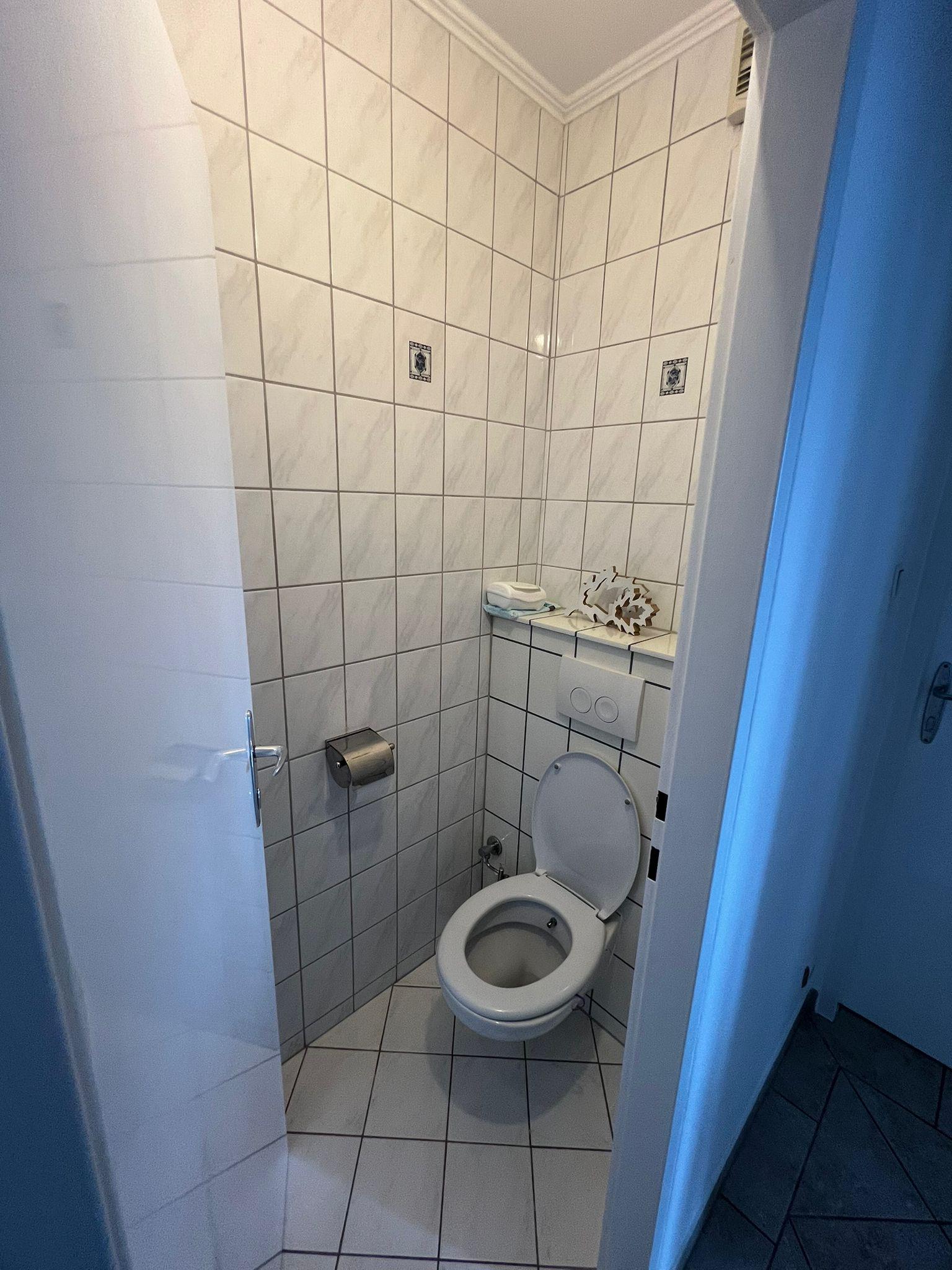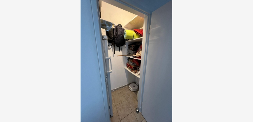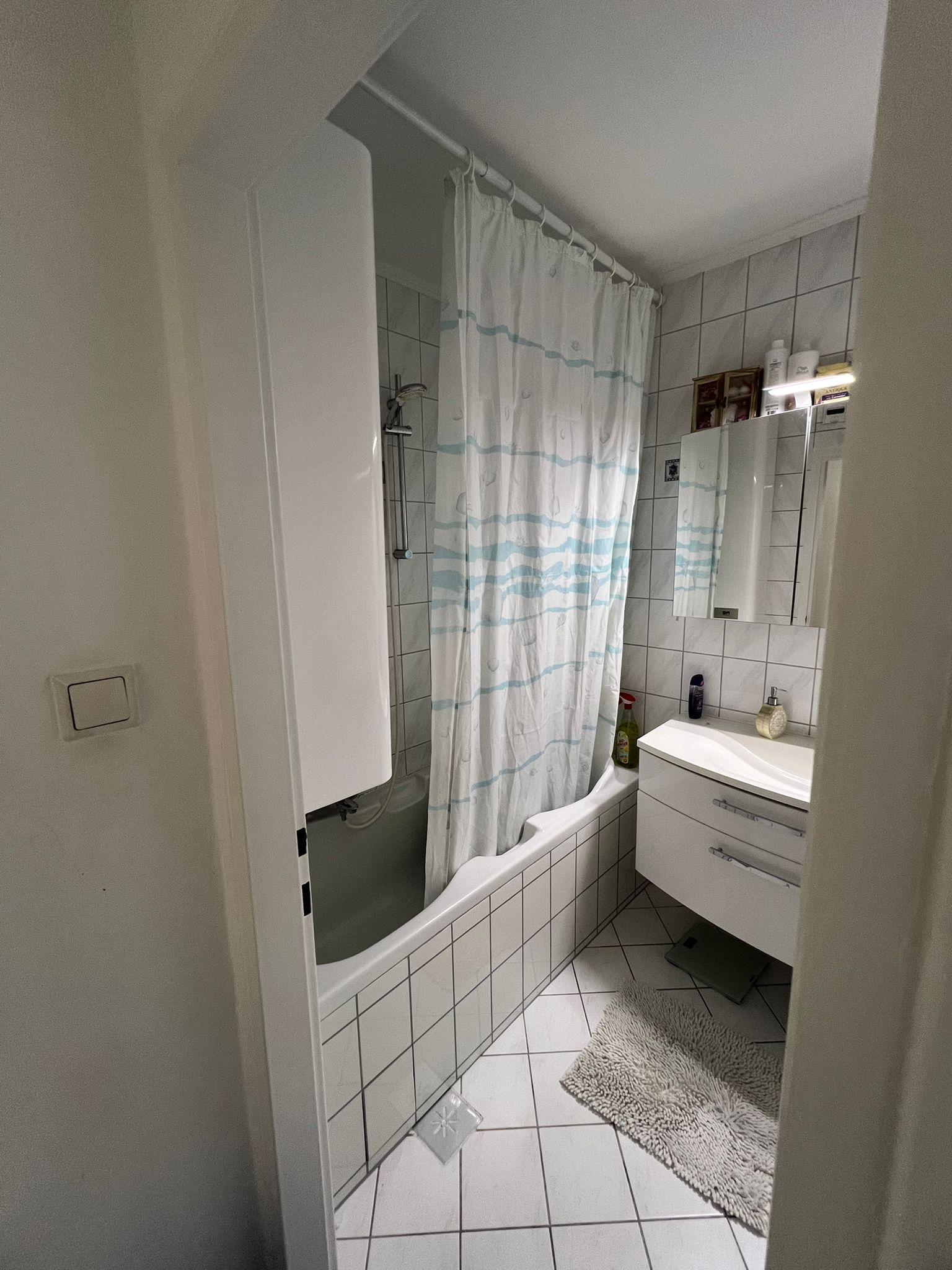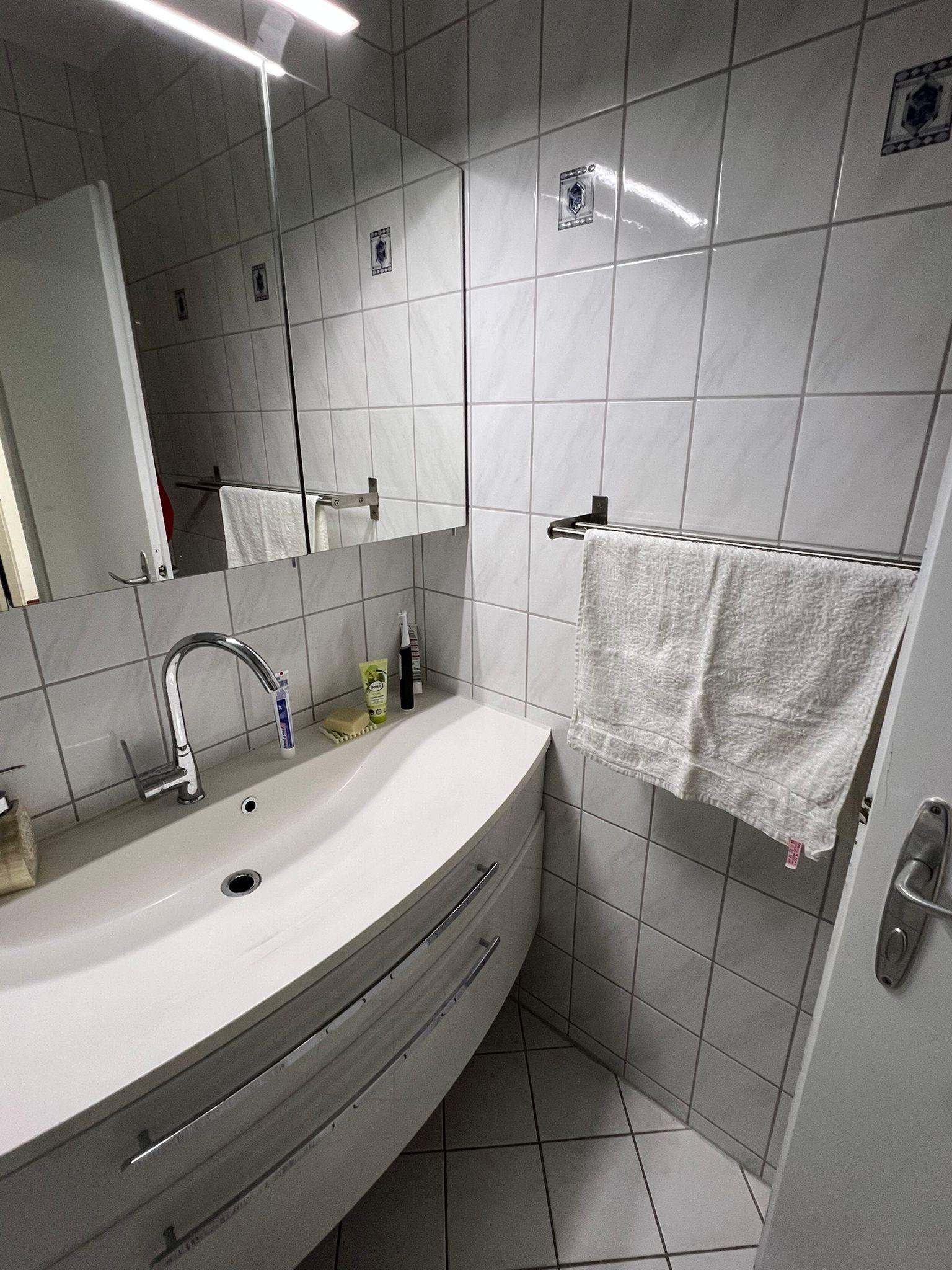 Ein Badezimmer mit Badewanne sowie ein separates WC sind vorhanden. Ein Abstellraum und ein Kellerabteil bieten zusätzlichen Stauraum.