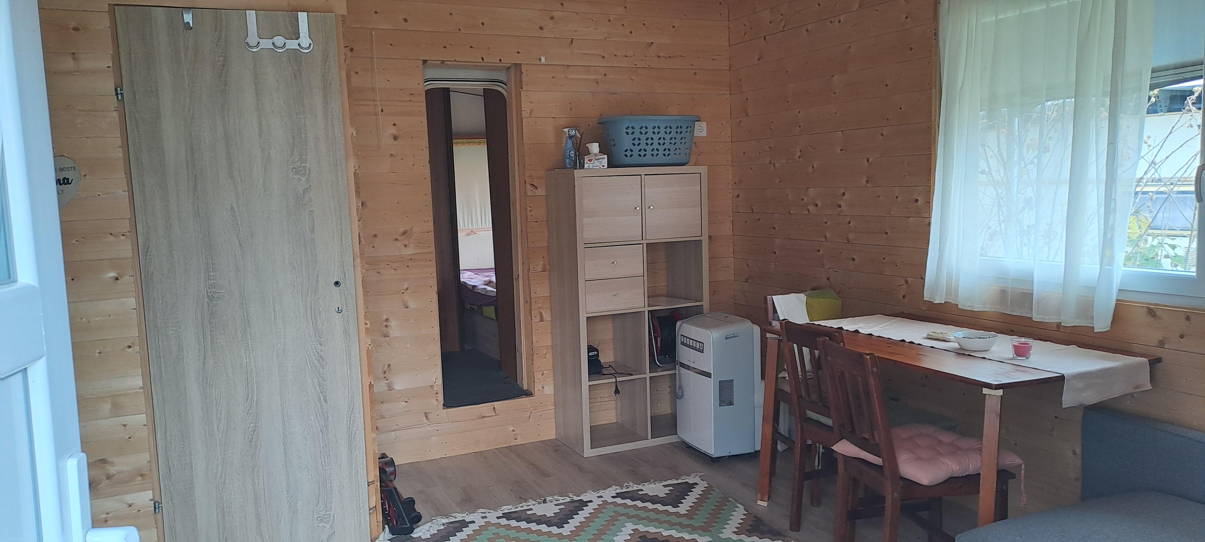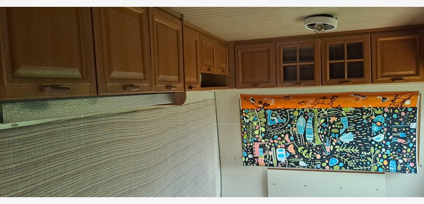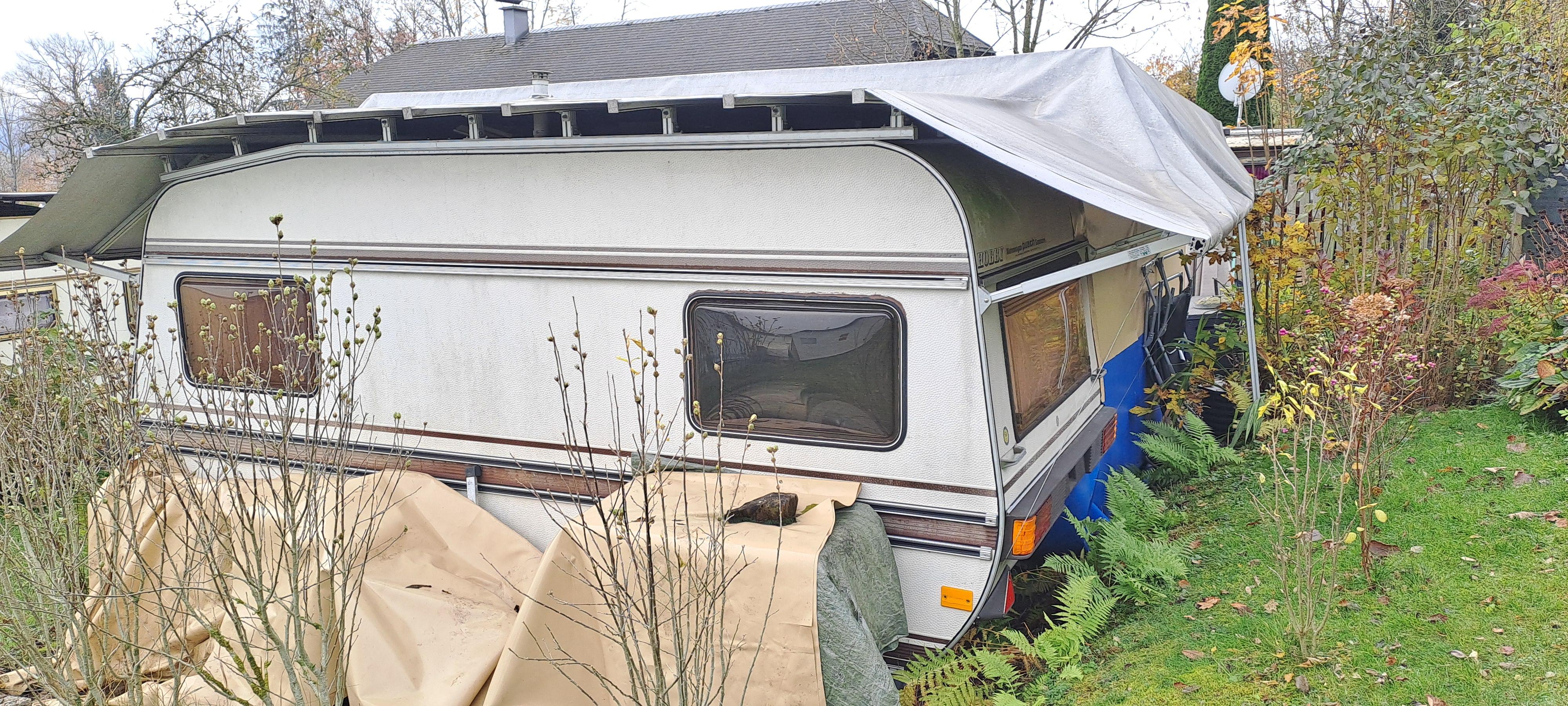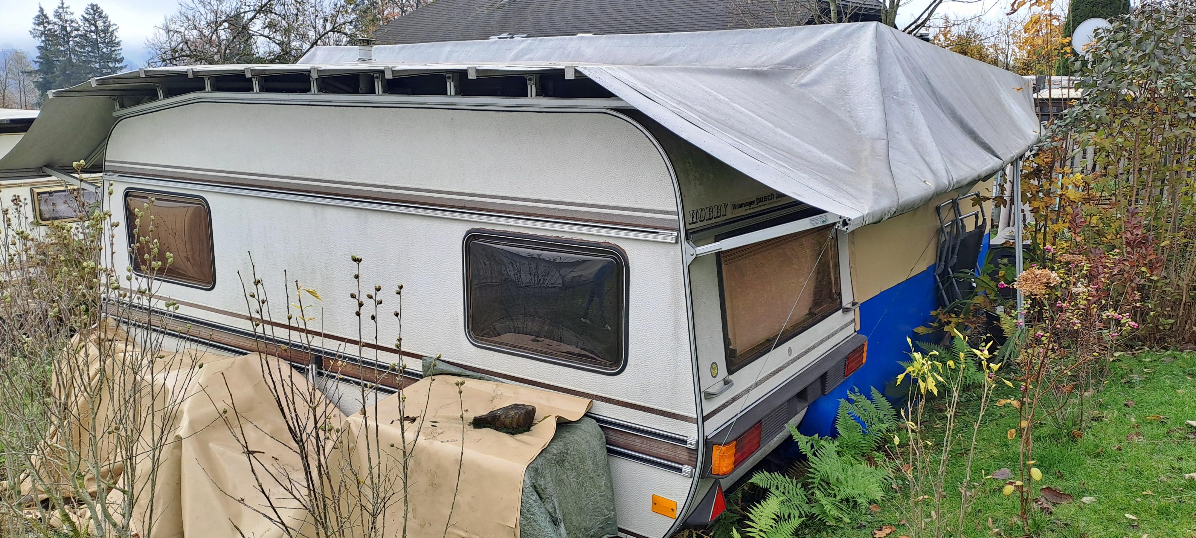 Verkauft wird dieser Wohnwagen inkl. ausgebautem Vorzelt. Der Wohnwagen selbst ist schon ein etwas älteres Semester, jedoch sehr gut erhalten, das Vorzelt wurde vor ein paar Jahren mit Holz verkleidet und mit einer neuen Küche ausgestattet. In der Ferienimmobile befindet sich fließendes (Warm)Wasser, Strom und eine Toilette. Auch ein Heizstrahler für kühlere Tage ist vorhanden. Der Wagen kann ganzjährig benutzt werden, das Duschhaus, welches sich gleich nebenan befindet, steht jedoch von Anfang April bis Ende Oktober zur Verfügung. Auch eine kleine Gartenfläche ist vorhanden.