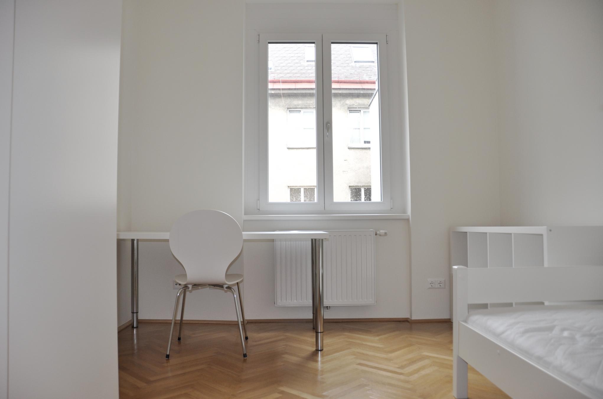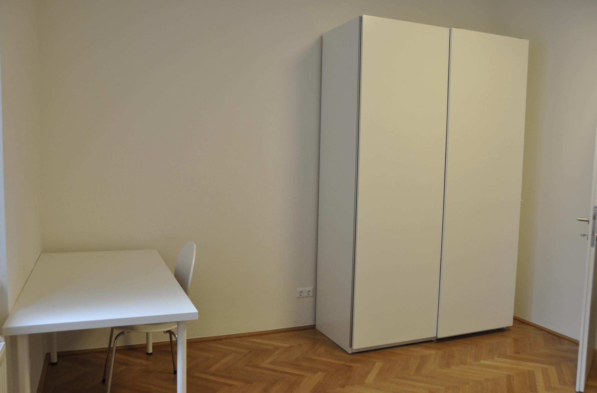 20 m² großes, möbliertes Zimmer zum Innenhof, mit LAN-Anschluss, TV-Anschluss, ostseitig