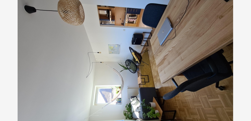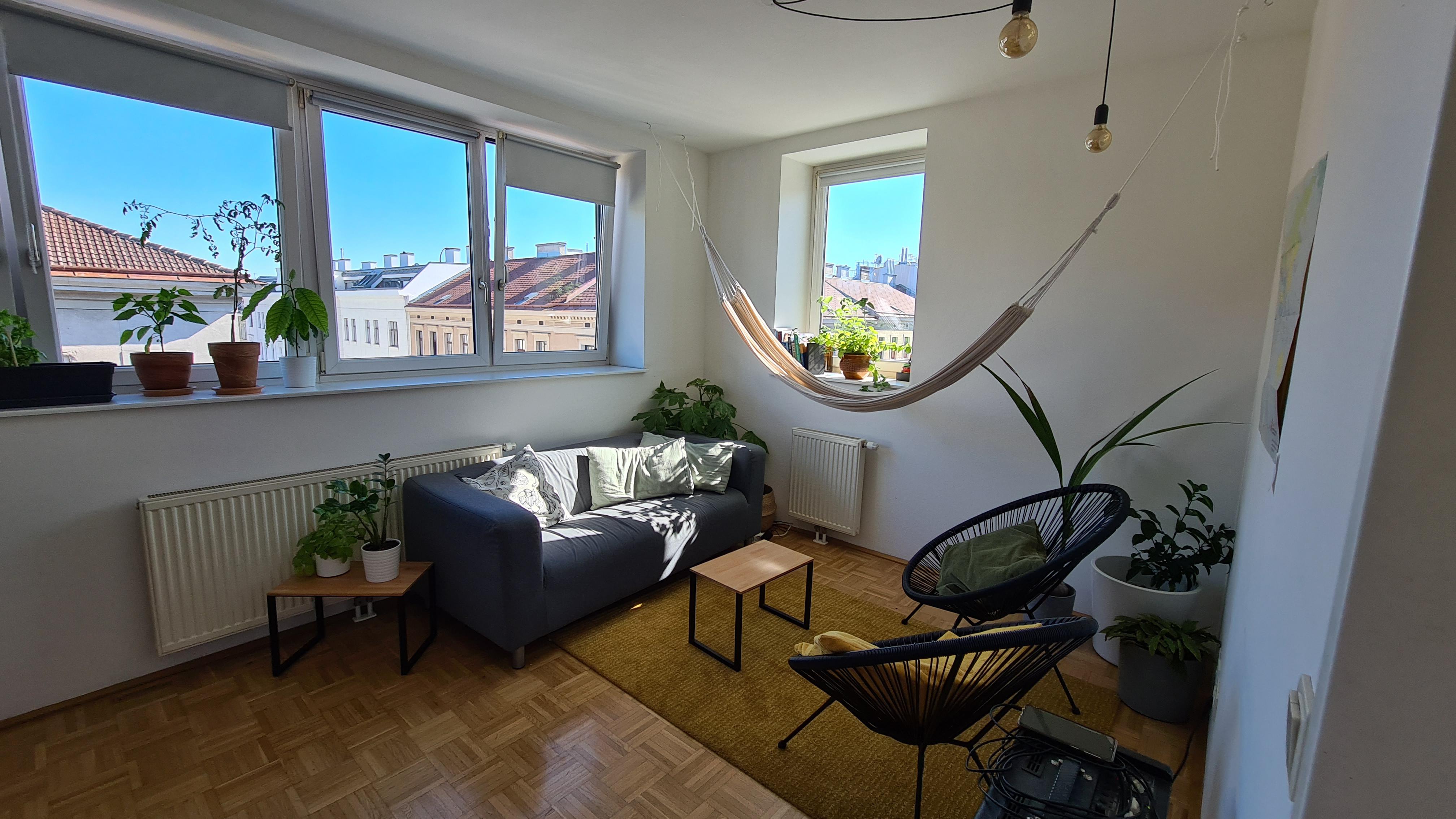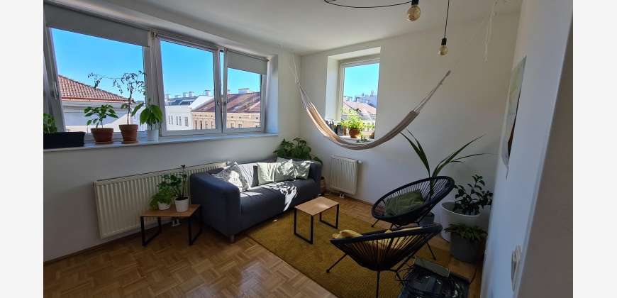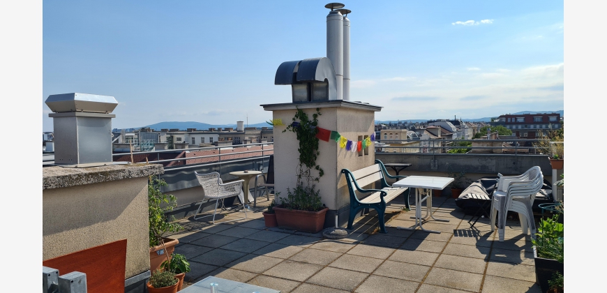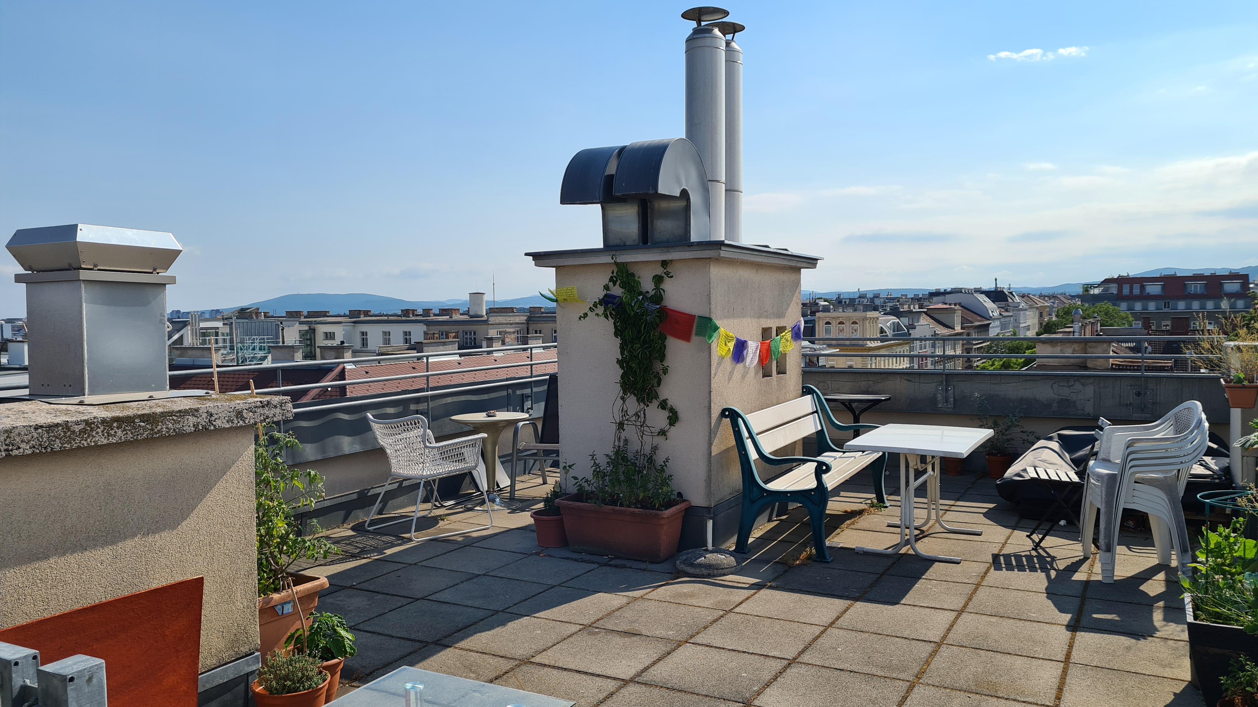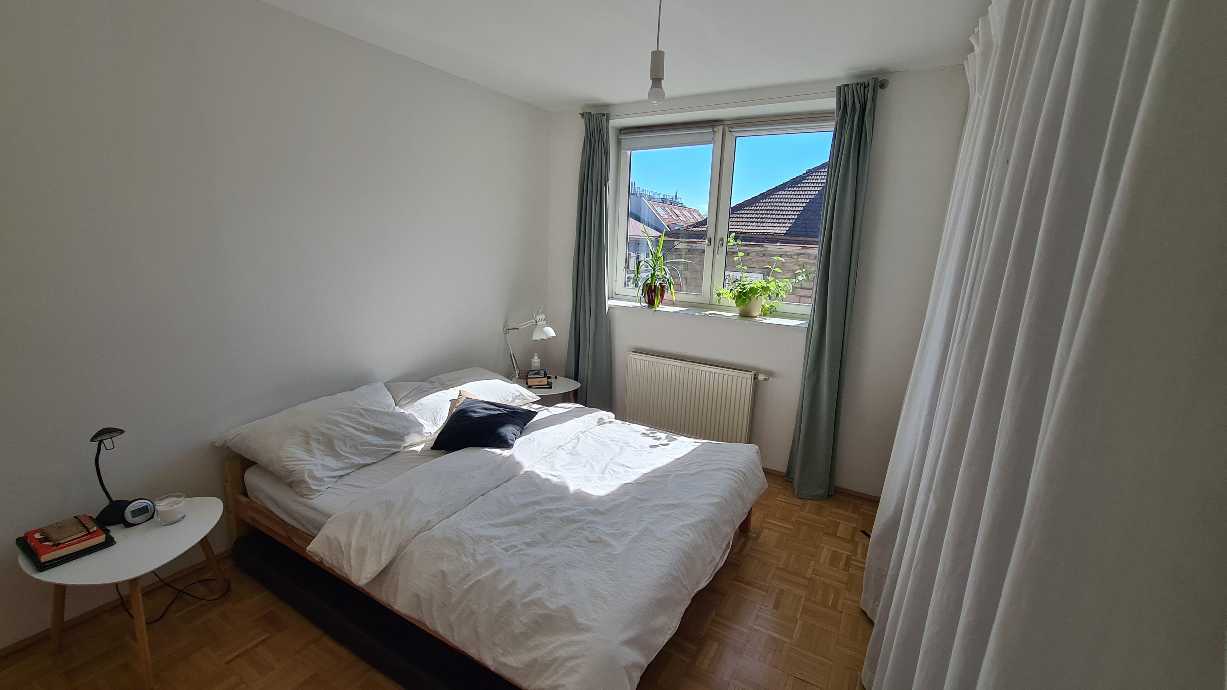 Fully furnished 2-room apartment with equipped kitchen (dishwasher, refrigerator, washing machine), bedroom with double bed, living room with working area, and amazing shared rooftop with a view over Vienna. The flat is perfect for individuals, couples and even small families. The apartment is southwest-oriented which offers a lot of light. The flat is very calm, and it does not face any main street.
