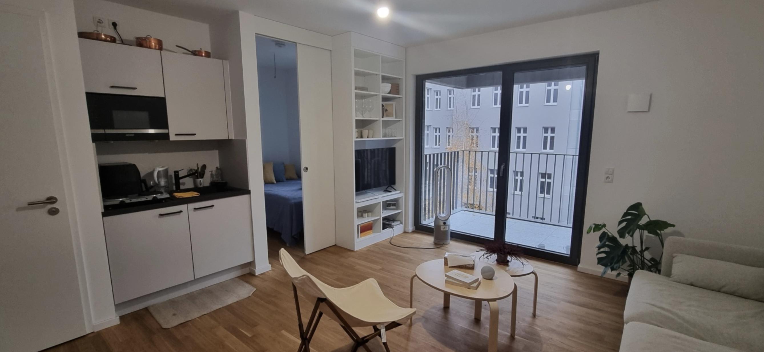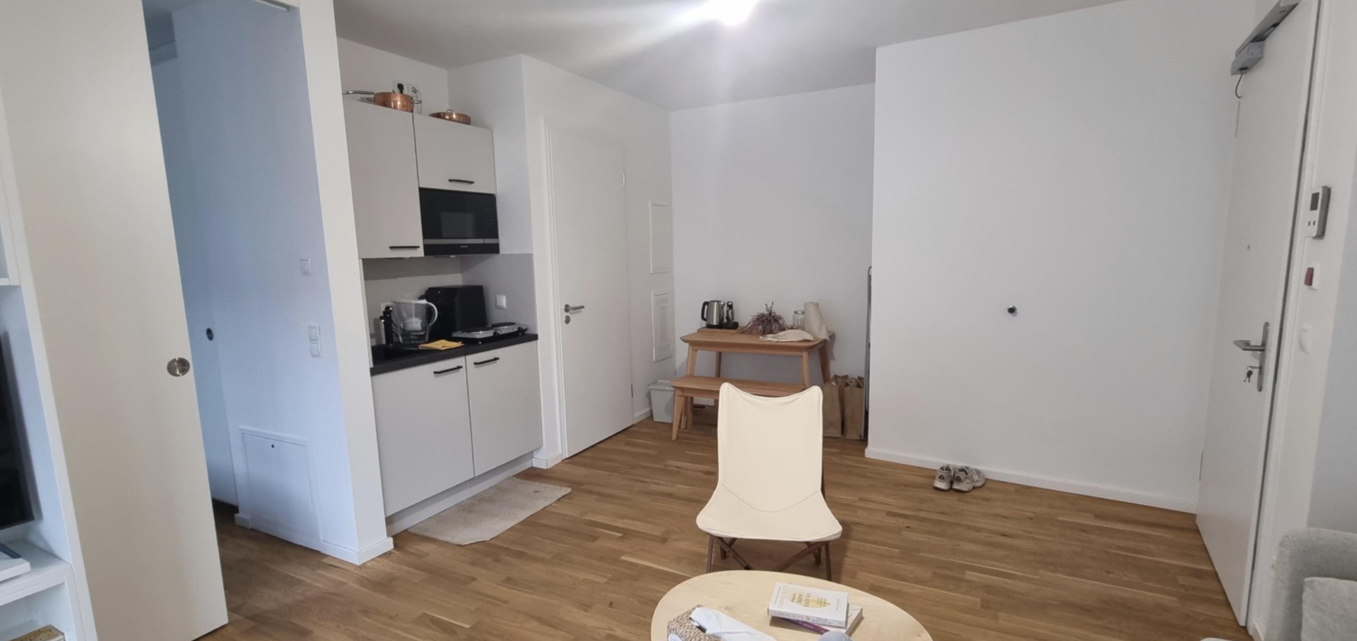 Moderne und gemütliche Wohnung such Nachmieter! Durchgehend gut beleuchtet mit Tageslicht. Geräumige Wohnküche mit Balkon mit Blick auf einen hübschen Hinterhof.