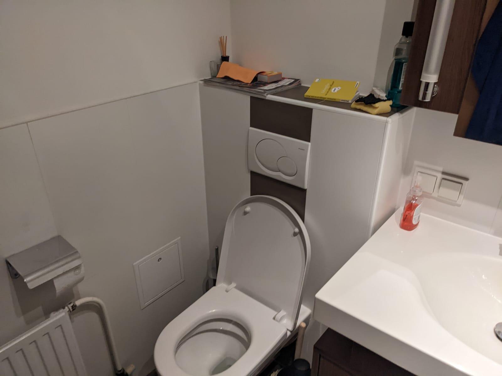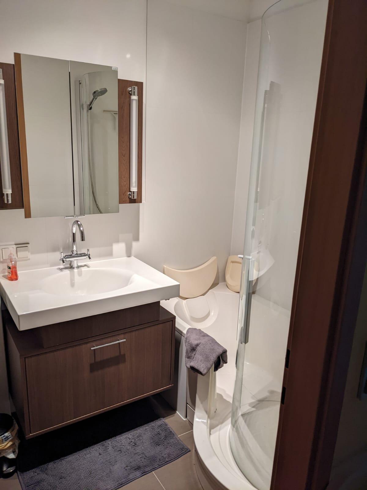 Bad/WC: WC, Spiegelschrank sowie Hängeschränk, Dusch-/Badewannenkombination von Artweger