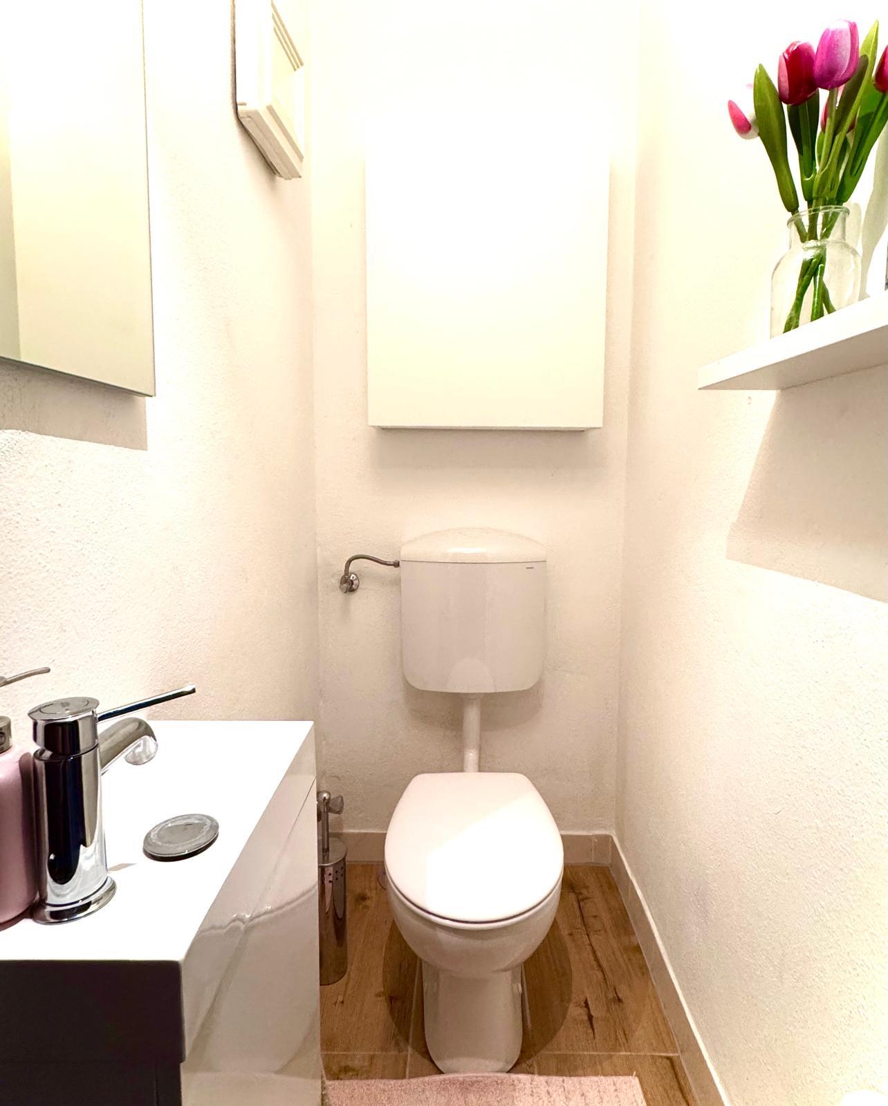 Badezimmer und WC modernisiert mit Doppelwaschbecken, neue Batterien, …