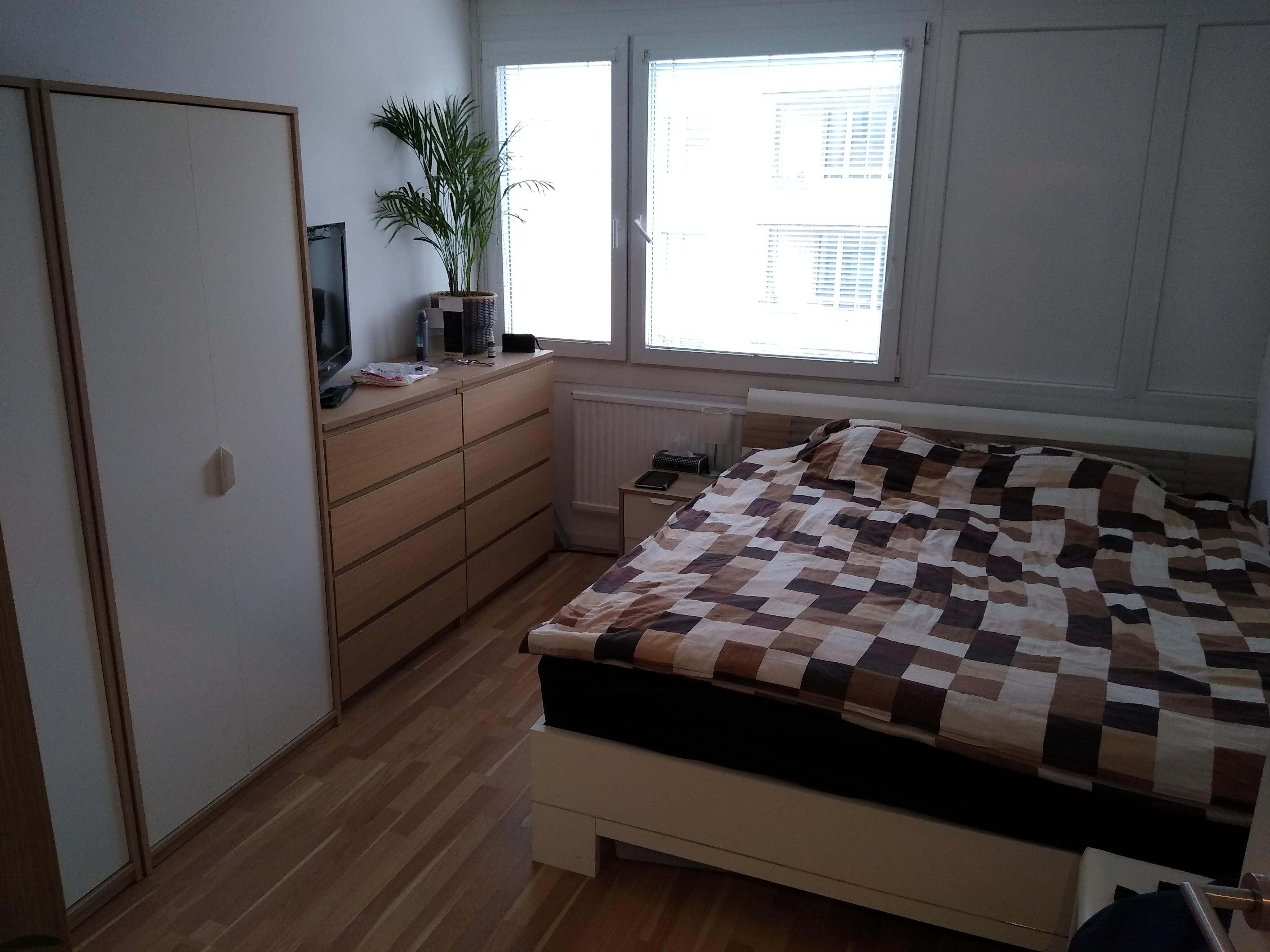 Dies ist eine Wohnung mit zwei Schlafzimmern, separate Küche und Wohnzimmer, Bad, WC und zwei Abstellräume. Unten gibt es einen Fahrradlage und einen Keller. Insgesamt ist die Wohnung 72 Quadratmeter groß.