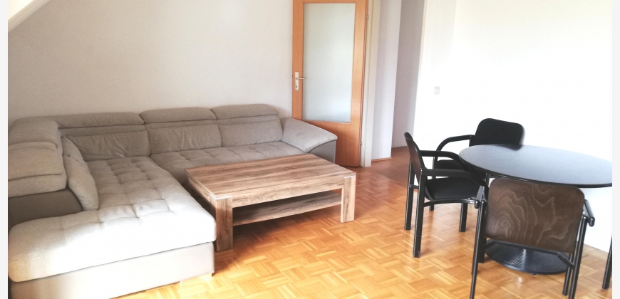 Die Wohnung hat 60m2 und eine Loggia von 7,5m2.