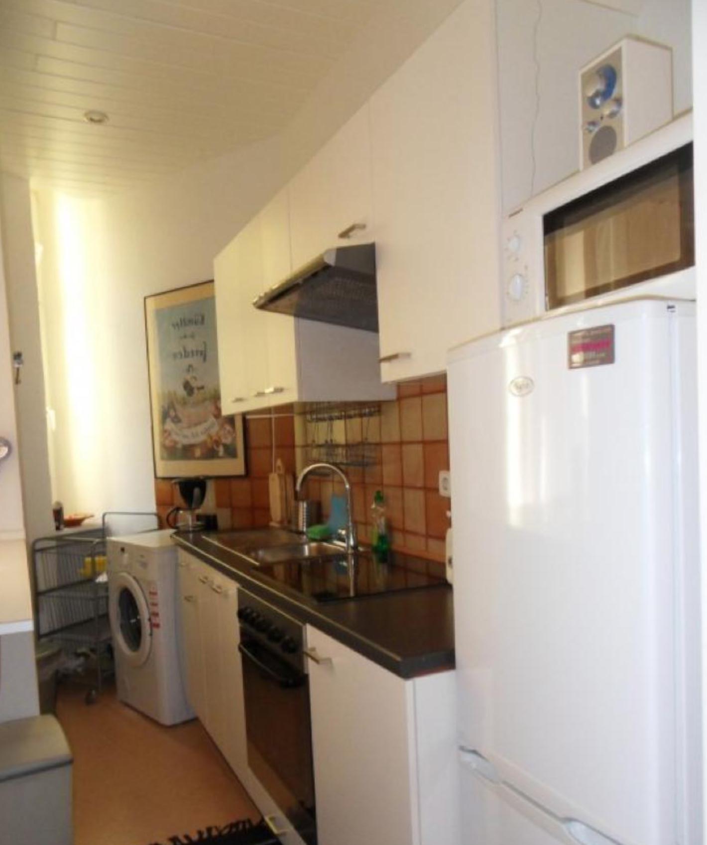 Die Wohnung verfügt über ein großes Wohnzimmer und ein schönes Schlafzimmer. Alle Möbel kommen raus bis auf den Bartisch + Hocker im Wohnzimmer.