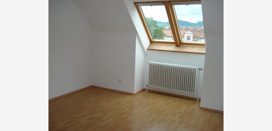 Die Wohnung mit 42m² besteht aus Vorraum, Wohnküche, großem Wohn-Schlafzimmer, Bad, WC sowie einem Abstellraum. Wachküche und Keller sind vorhanden. Die Dachgeschoßwohnung ist im 5.Stock und daher sehr hell und ruhig.
