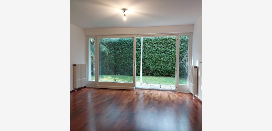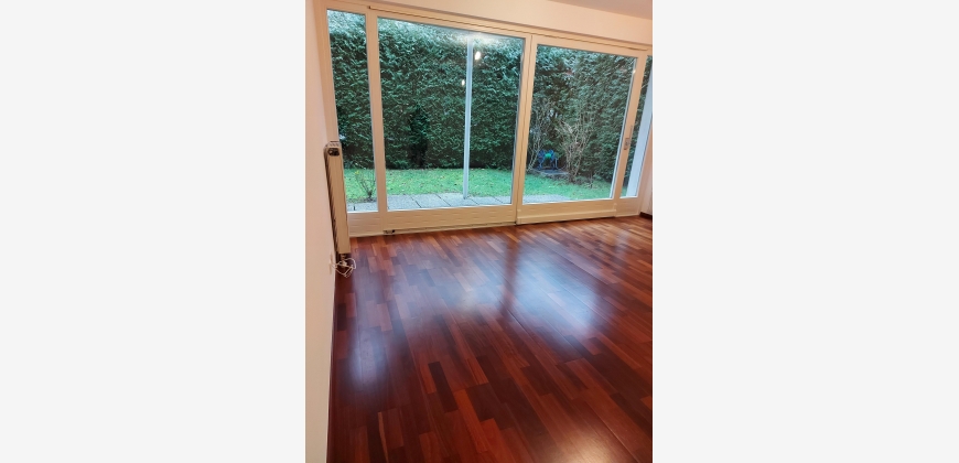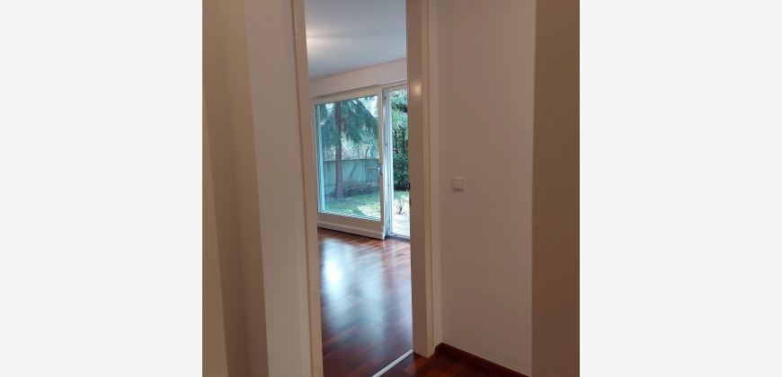 Wohnungsdetail: Flur 3,81m2; Garderobe 2,25m2; WC mit Handwaschbecken 1,41m2; Wohnzimmer mit Parkettboden und direktem Ausgang in den Eigengarten 23,60m2; Abstellraum mit Einbauschrank 3,26m2; Bad mit Wanne und hochwertiger Ausstattung 4,16m2; Zimmer mit Parkettboden und Fensterfront in den Garten 11,81m2; komplette neuwertige Einbauküche mit Geräten 5,81m2; eigener Kellerraum 3m2