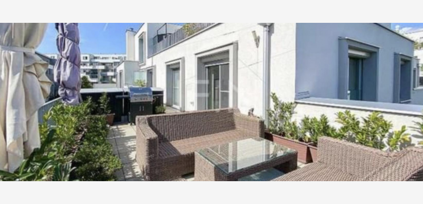 93m² Wohnfläche + 34m² Terrasse im 3. Liftstock samt Garagenplatz (mit Stromanschluss), Ruhelage, Hofseiting, Grüneflächen, Neubau, Baujahr 2016, in 1210 Wien Floridsdorf, nähe Obere Alte Donau und in Gehentfernung zu Bahnhof Floridsdorf. Befristung ab 8 8 88 Jahre möglich.