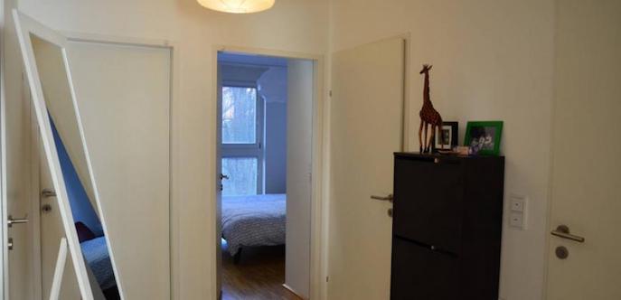 Die Wohnung ist 64m2 gross , sehr hell und verfügt über einen 5m2 grossen Balkon, der südseitig ausgerichtet ist. Die 2 Schlafzimmer sind 10,9 und 11,42 m2 und das Wohnzimmer ist 24m2 gross. Da es sich um einen Neubau handelt ist alles in gutem Zustand und die Isolation ist sehr gut.