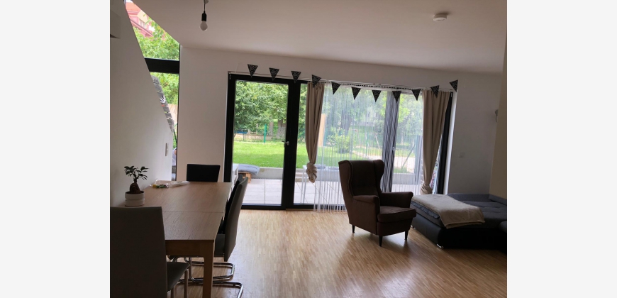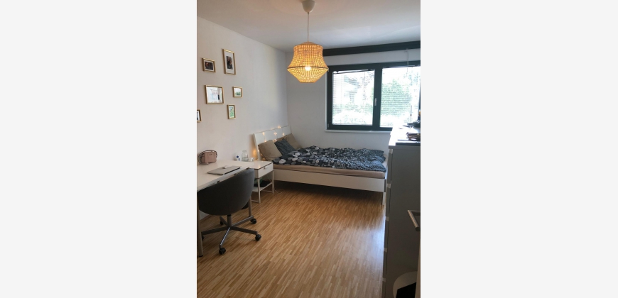 Die moderne 5 Zimmerwohnung ist auf zwei Etagen aufgeteilt, wobei sich im Erdgeschoß die offene Wohnküche mit voll ausgestatteter Küche (Spülmaschine, Backofen, Elektroherd, Kühlschrank, Gefrierschrank) mit Fensterfront, eine Abstellkammer und ein WC befinden. Außerdem gehört zu der Wohnung ein sonniger großer Garten, der innenhofseitig liegt. Im oberen Stock befinden sich 4 getrennt begehbare Schlafzimmer alle mit großen Fenstern, ein WC und ein modernes Badezimmer mit Waschmaschinenanschluss. Zu der Wohnung gehört ein eigenes Kellerabteil. Die Wohnung befindet sich in einer ruhigen Wohnsiedlung mit sehr freundlichen und hilfsbereiten Nachbarn.