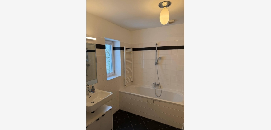 • Bad mit Dusche, Wanne, Doppelwaschbecken und Fenster