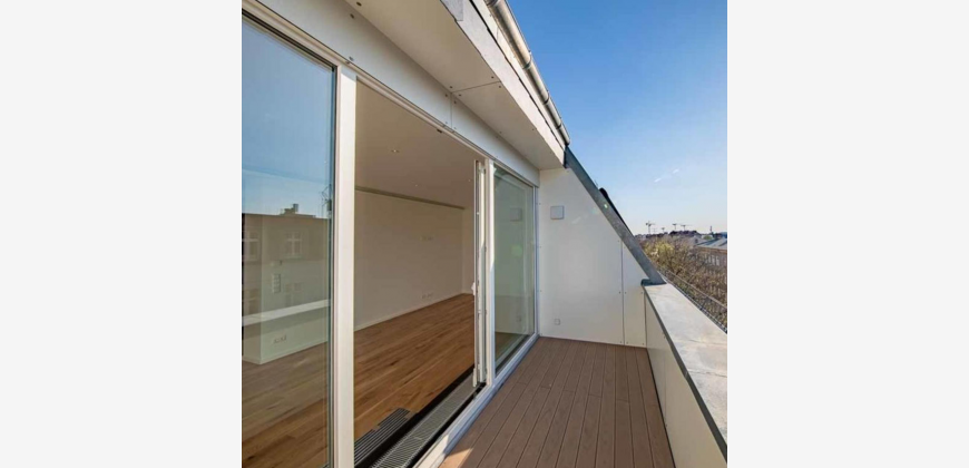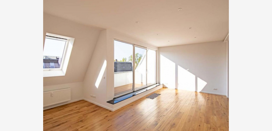 Parkett in allen Zimmern, Großzügiges Wohnzimmer mit Terrasse, Dachflächenfenster mit Rollladen, Wohnungseingangstür mit Mehrfachverriegelung.