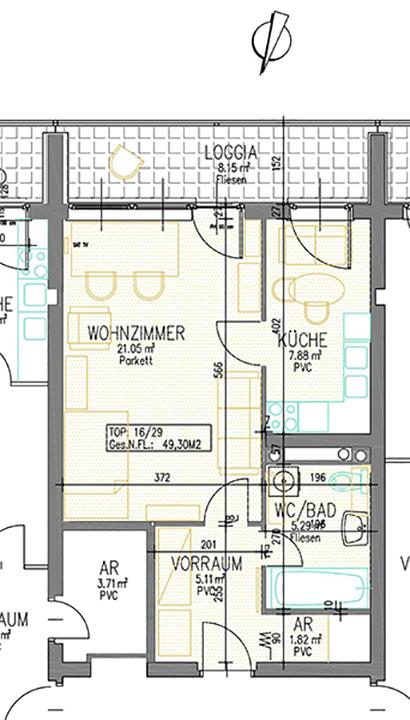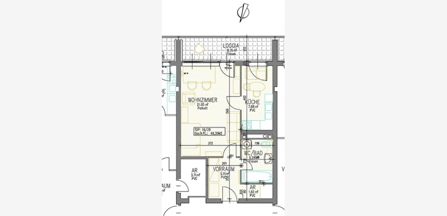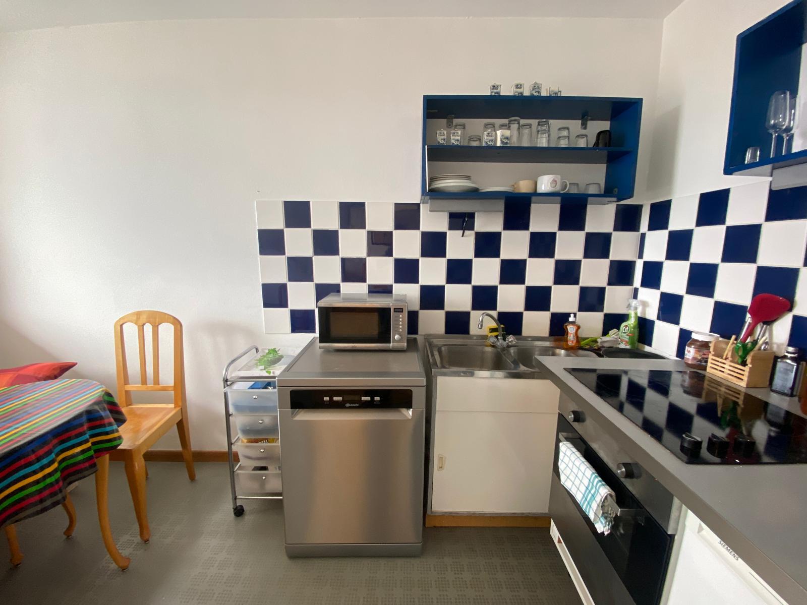 In der Wohnung vorhanden sind Waschmaschine, Küche und Geschirrspüler.