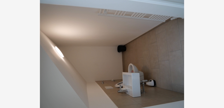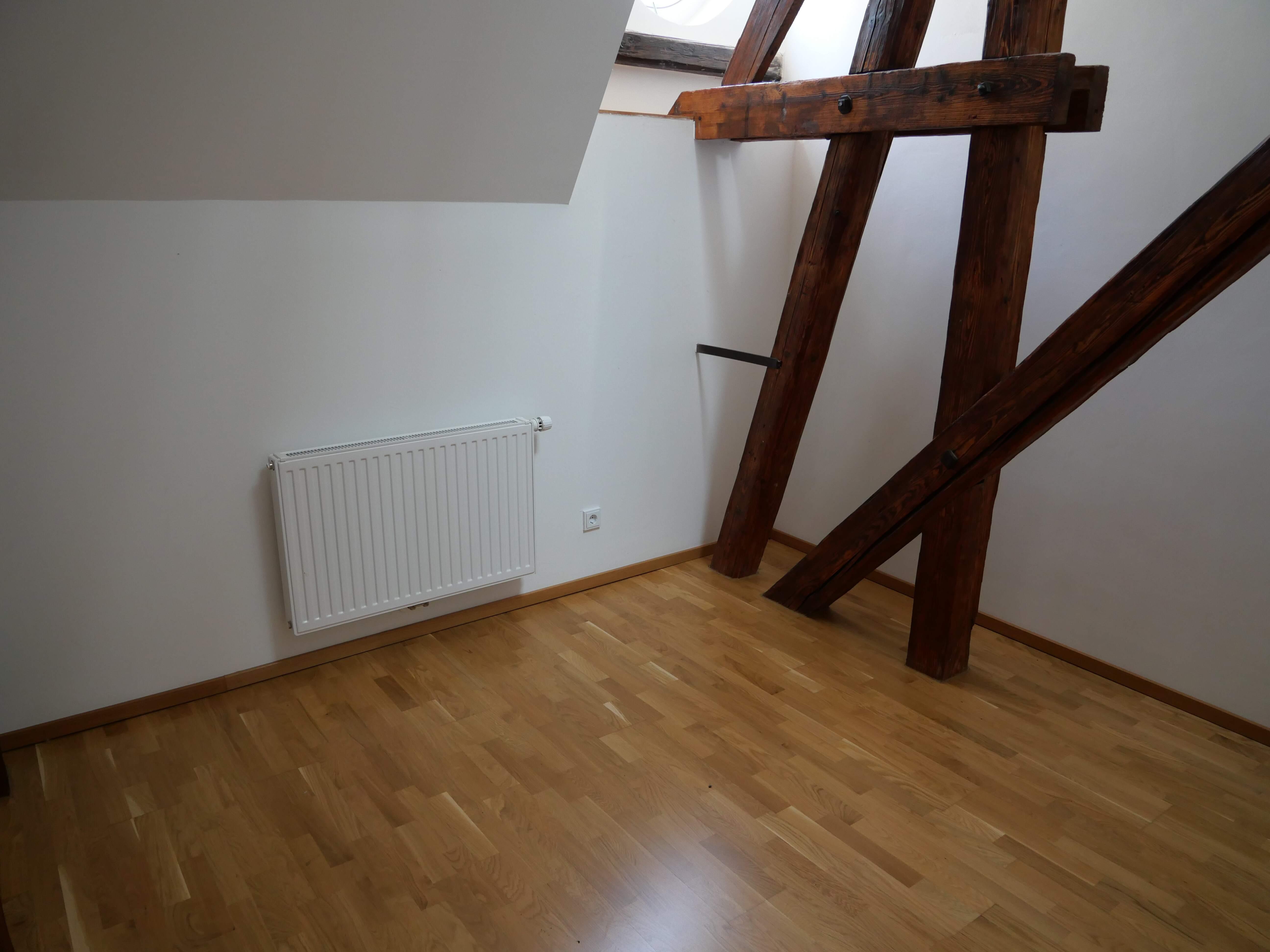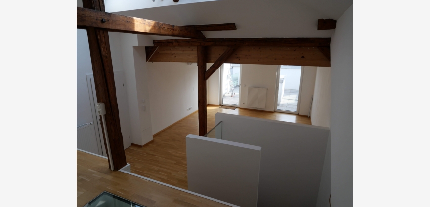 Diese Dachgeschosswohnung ist perfekt für Paare und Singles. Mit einer Fläche von circa 80m² teilt sich die Wohnung auf 2 Etagen wie folgt auf:
