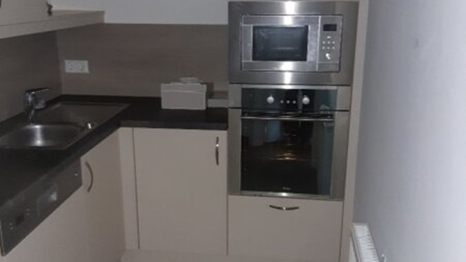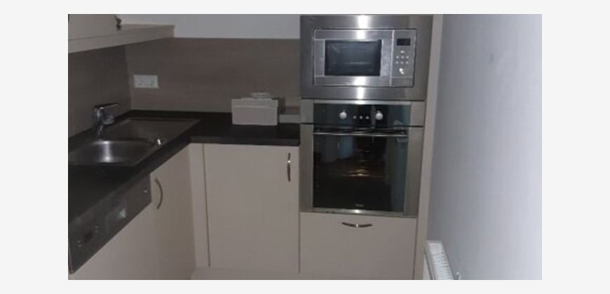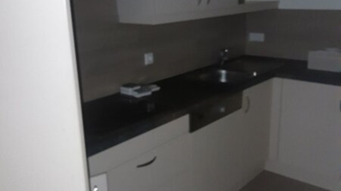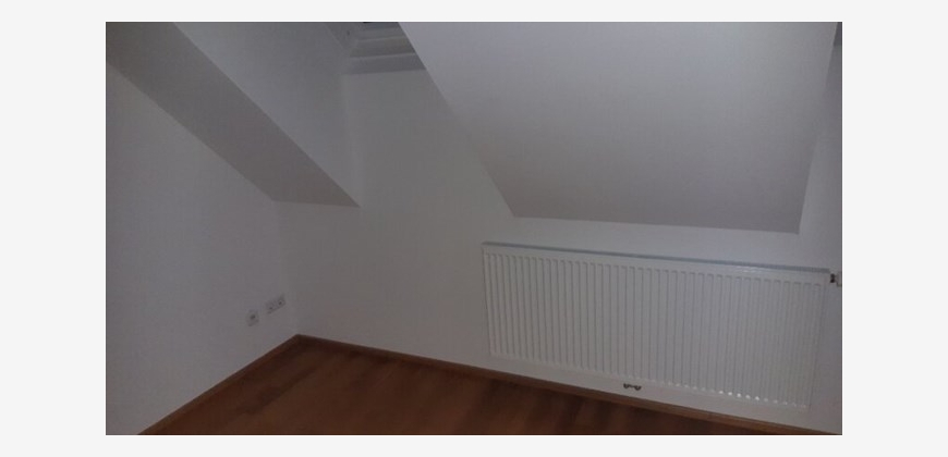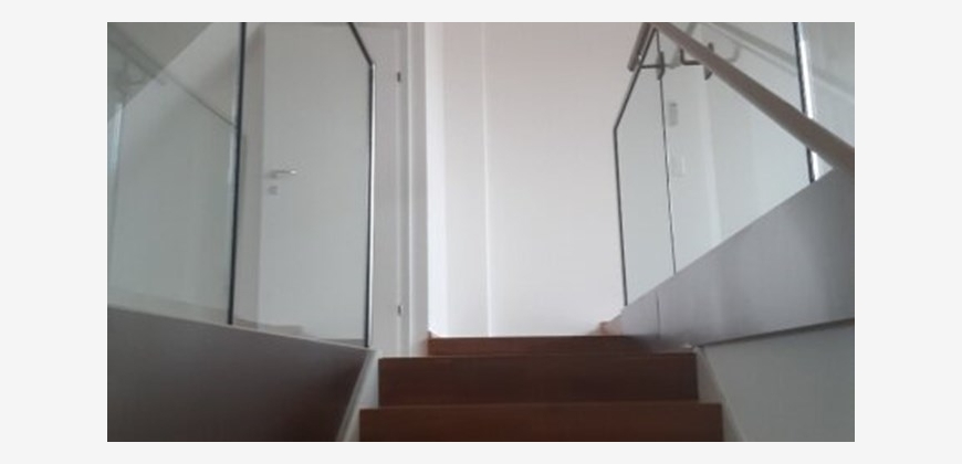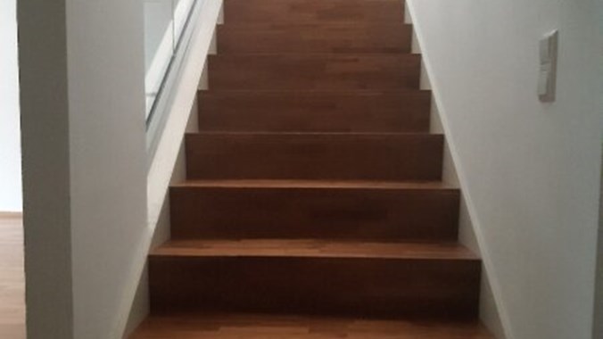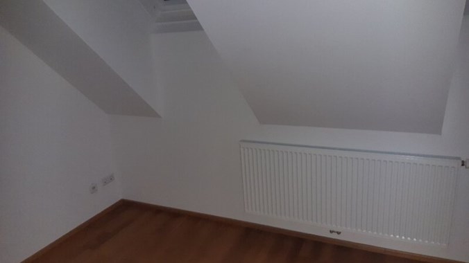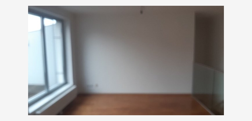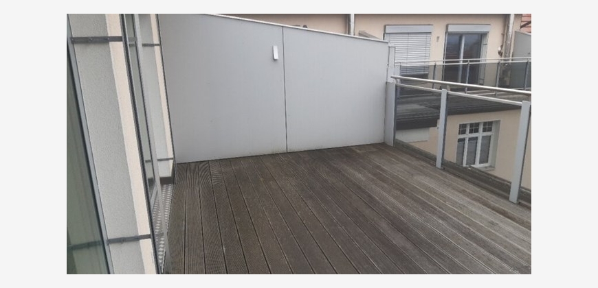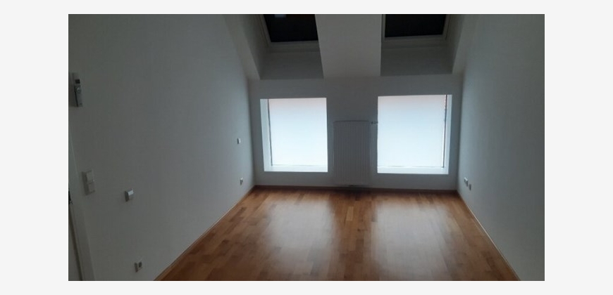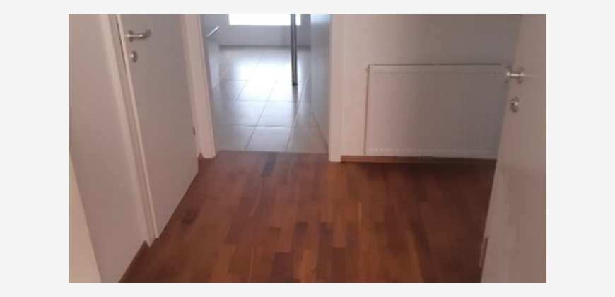 Stilwohnung mit Wohnküche, 3 Schlafzimmern und Parkettboden, 94 m², Dachterrasse, Abstellkammer und Waschraum. Zimmer straßenseitig. Einbauküche mit Kühlschrank, E-Herd und Mikrowelle. Bad mit Wanne, zwei WCs, Fernwärmezentralheizung, Lift. Unbefristet.