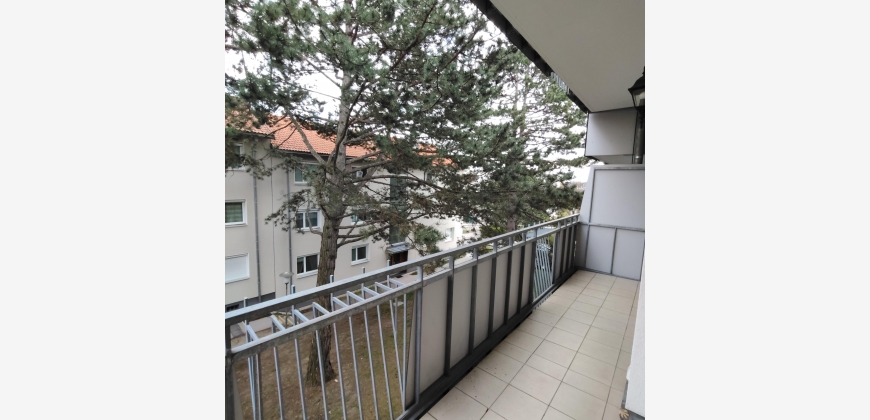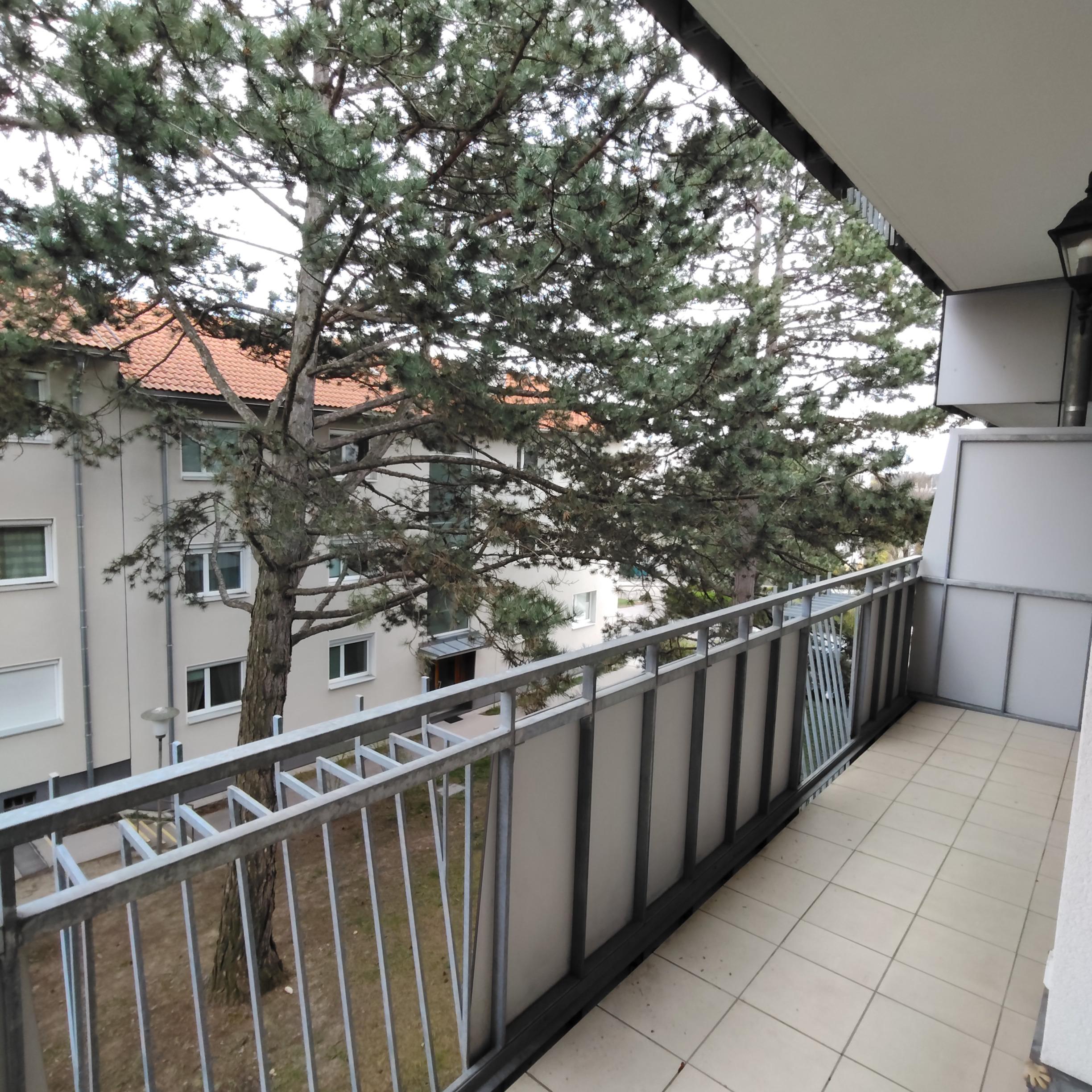 Balkonzugang vom Wohnzimmer und einem Schlafzimmer (Südost – sonnig am Vormittag).