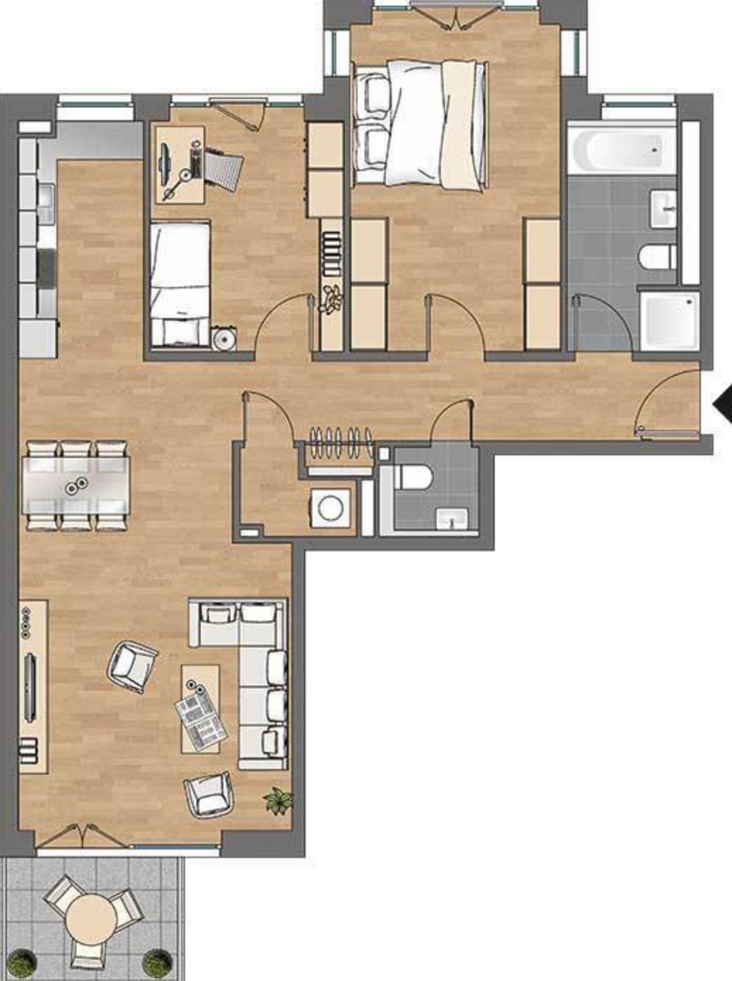 Die Wohnung liegt im 2. Stockwerk (mit Lift) eines Nebauhauses. Sie verfügt über 73 qm, verteilt auf Wohnzimmer mit Küche, Schlafzimmerimmer, kleines Schlafzimmer, Vorzimmer, Bad, Abstellraum und Gäste-WC. Die Wohnung ist mit neuwertigen Parkettböden ausgestattet. Eine schöne moderne Küche mit allen Geräten und eine Waschmaschine ist vorhanden. Das Bad ist mit Dusche, WC und Waschbecken ausgestattet und neuwertig gefliest. Ab sofort auf 5 Jahre (Verlängerungsmöglichkeit) zu vermieten.