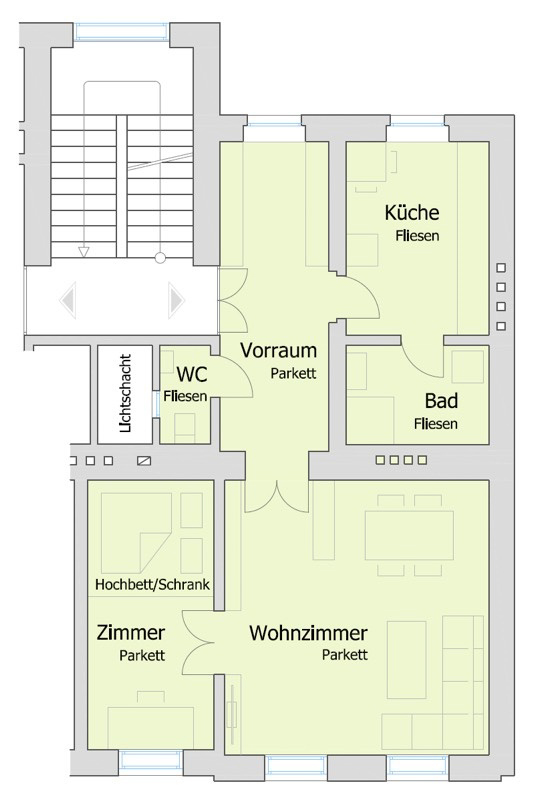 Hohe und helle Räume inkl. Parkettboden und Pflanzen