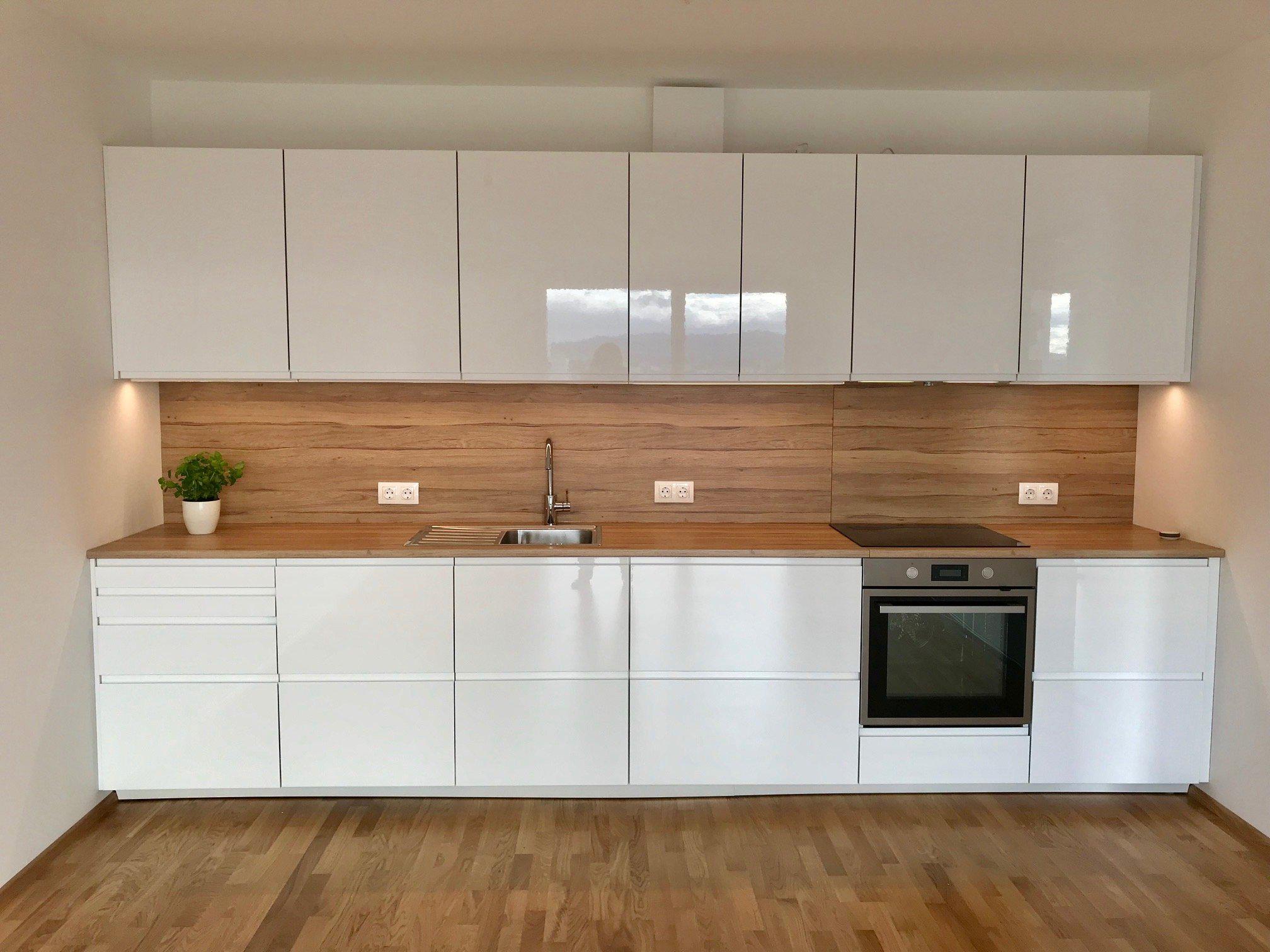 Markenküche (Hochglanz, grifflos) inkl. Markenküchengeräte, Architektenplanung.