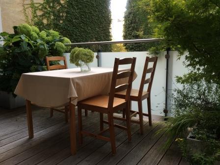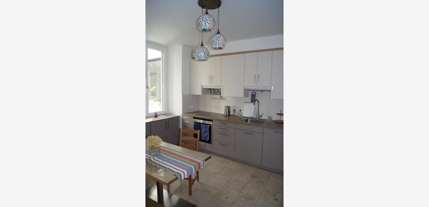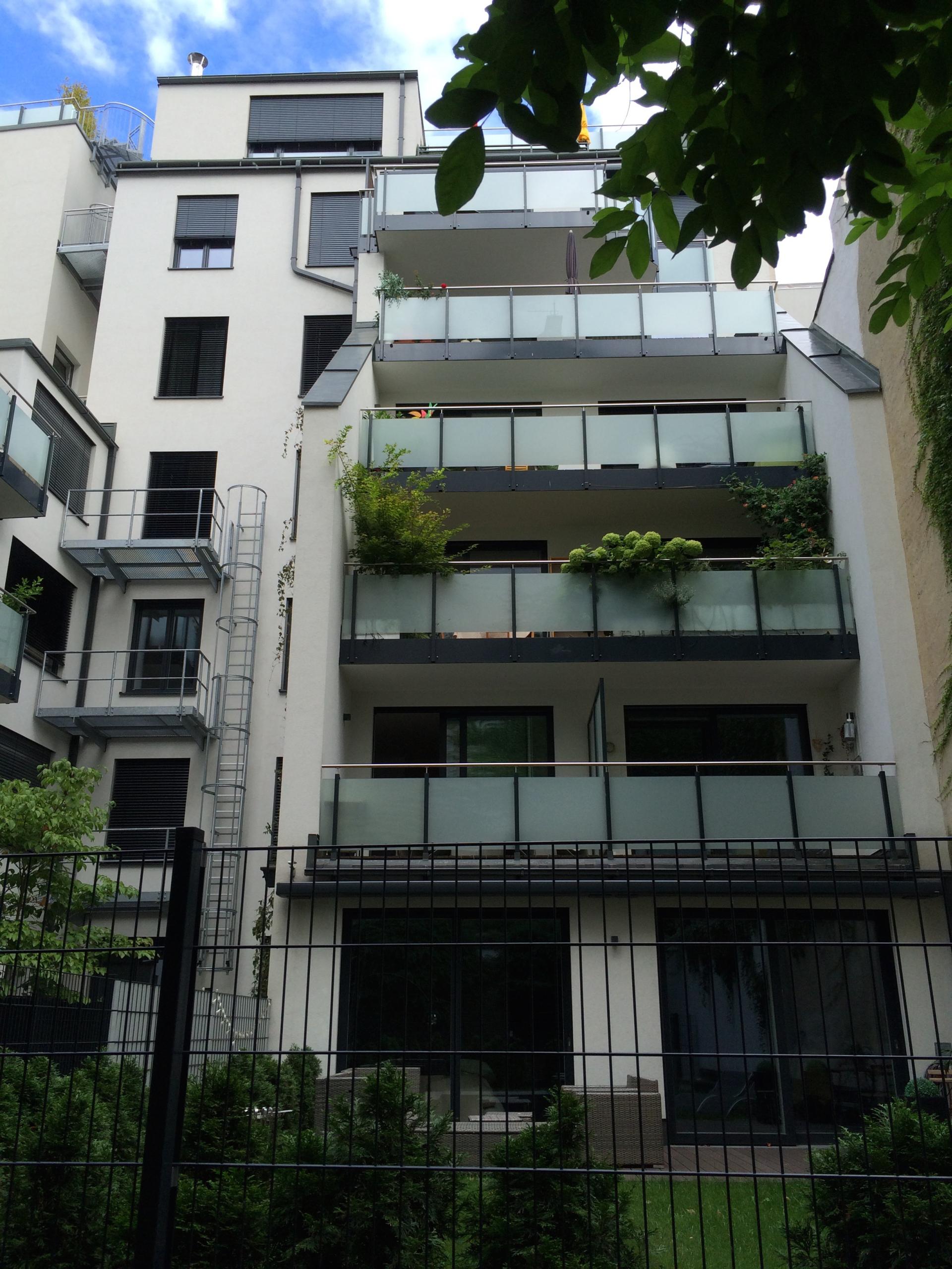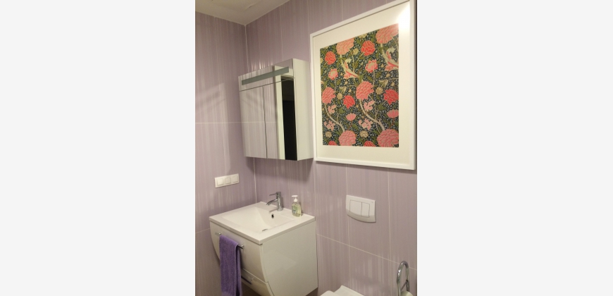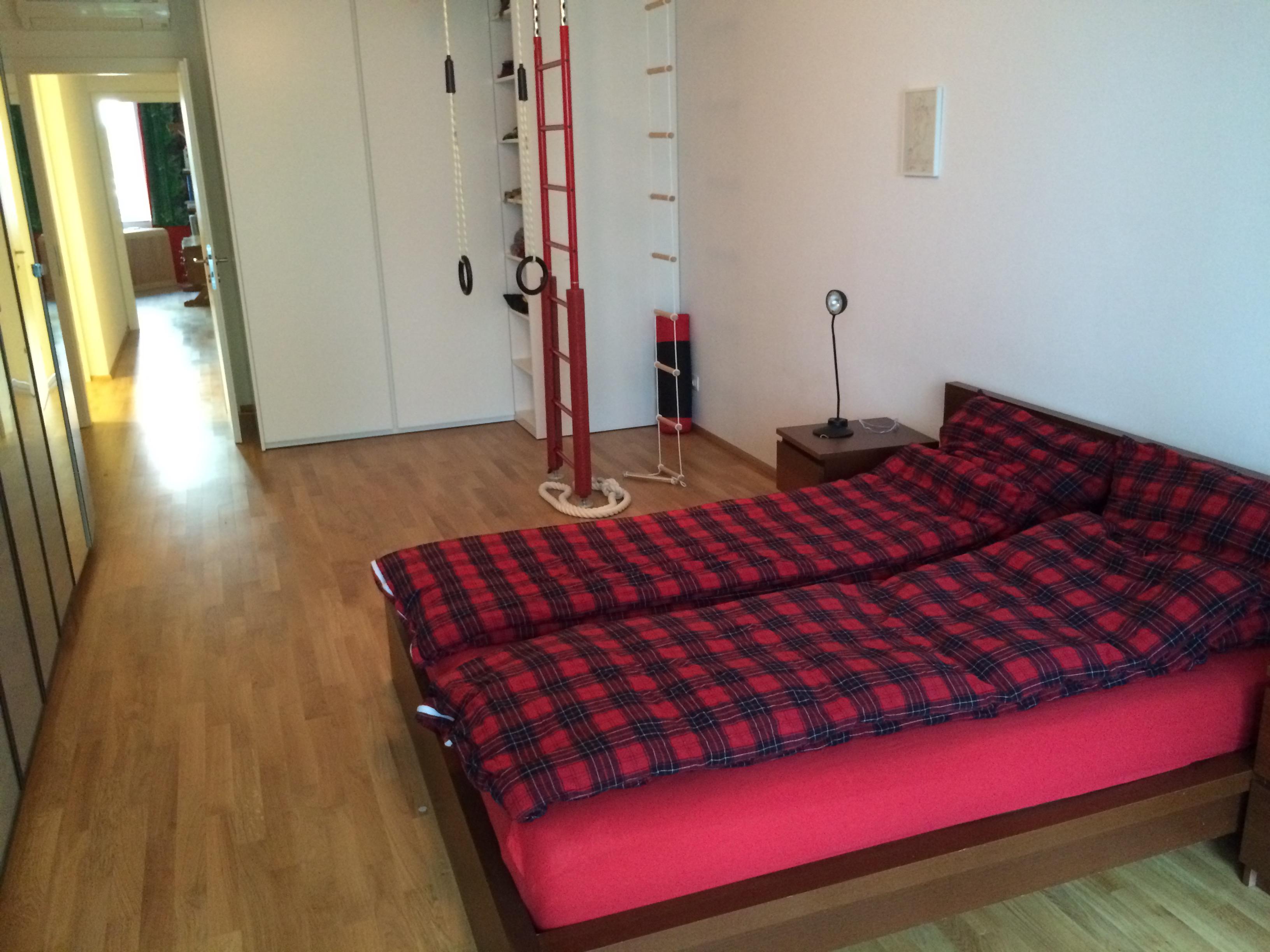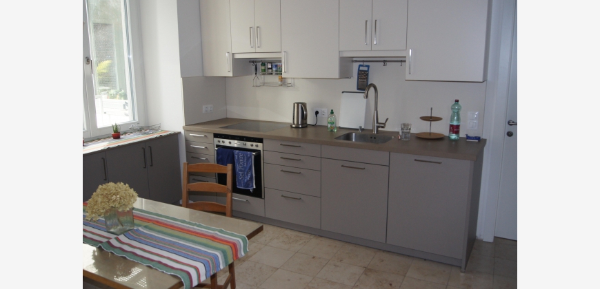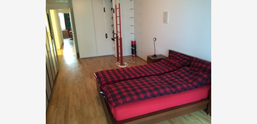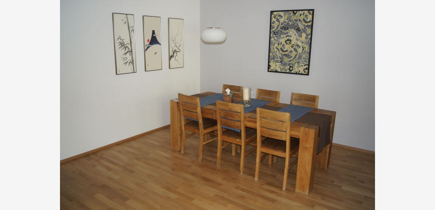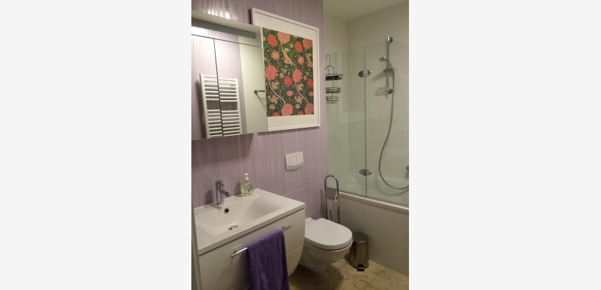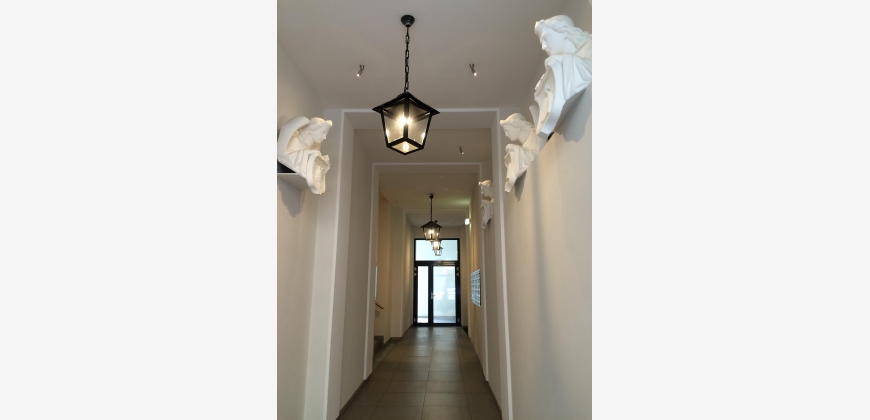 Die Wohnung ist modern, komfortabel und großzügig (142m2). Es gibt ein großes Wohnzimmer mit Essbereich (38m2), ein ausgedehnter Balkon (16m2) mit Blick auf einen stillen begrünten Innenhof, eine separate Küche mit kompletter Ausstattung, 2 elegante Badezimmer, 1 großes Schlafzimmer (28m2) und 2 Kleinere (12 und 15m2). Zusätzlich stehen ein Abstellraum und ein Kellerabteil (5,5 m2) zur Verfügung. Die Fenster sind sehr hochwertig, es gibt Fußbodenheizung und Klimaanlage. Zwei der Schlafzimmer haben große Designer-Einbauschränke, das Dritte ein ausklappbares Doppelbett, womit es flexibel als Gäste- und Arbeitszimmer brauchbar ist. Die Wohnung wurde für die Eigennutzung dekoriert und ausgestattet und weist hochwertige Materialien auf, inklusive Eichenparkett und Marmorboden sowie eine gehobene Küchenausstattung. Das Gebäude selbst wurde 2014 generalsaniert und sehr gut wärmeisoliert. Die Wohnung ist möbliert.