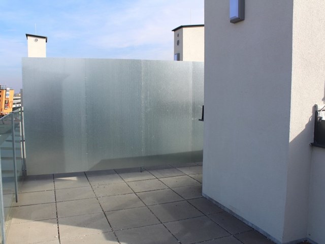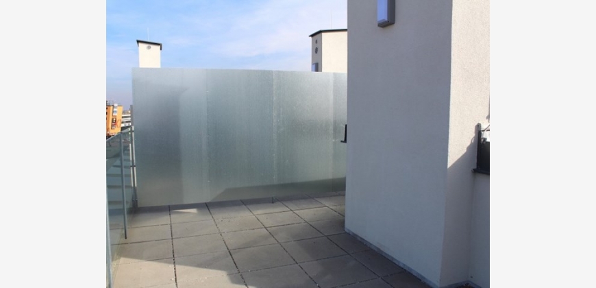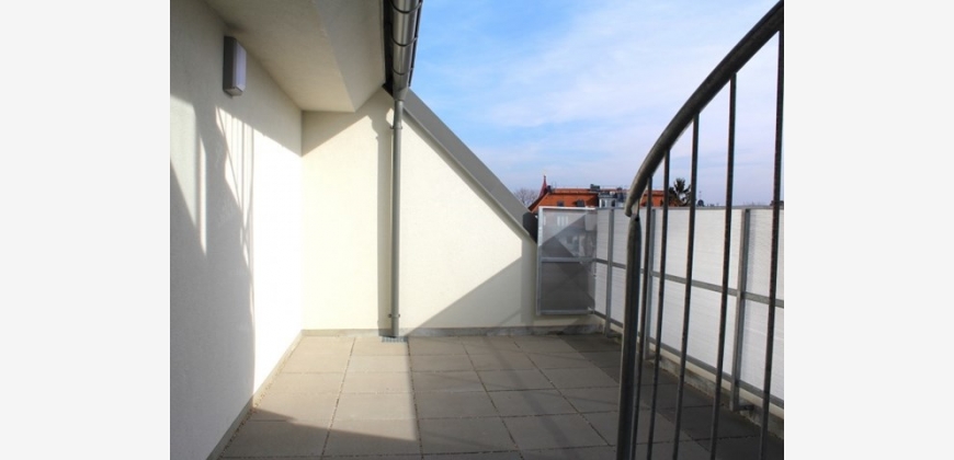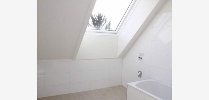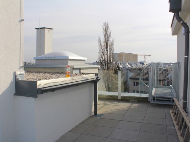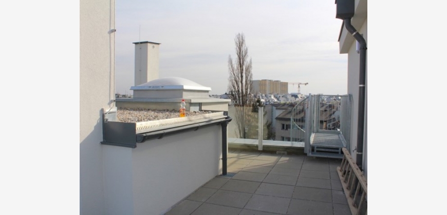 Die 2-Zimmer-Wohnung mit knapp 56 m² Wohnfläche zuzüglich ca. 43 m² Terrasse erstreckt sich über das 5. Obergeschoss und das Dachgeschoss und gliedert sich wie folgt: