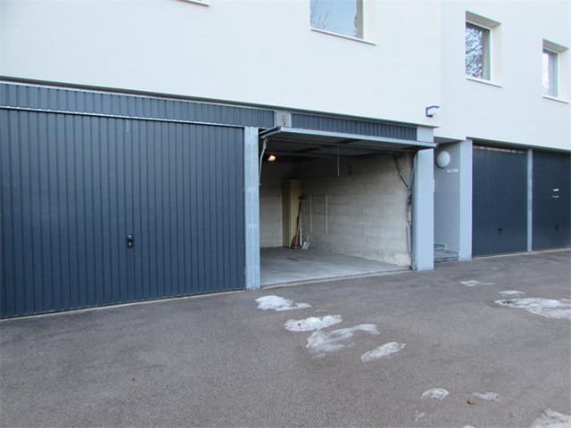 Parken Sie Ihr Auto sicher und trocken in der ebenerdigen und mit elektrischem Tor versehenen Garage. Ihre Gäste können auf den Privatparkplätzen im Hof parken.
