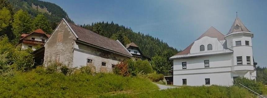 Die Liegenschaft umfasst ein altes Landhaus mit Turm,