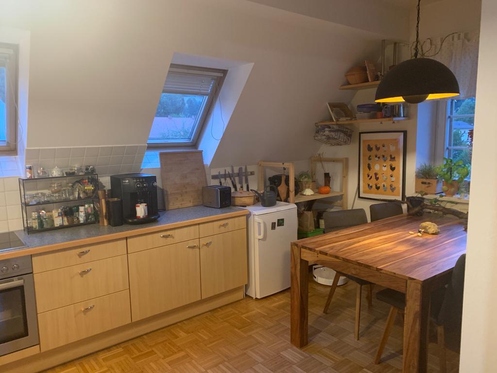 Sehr gemütliche Dachgeschosswohnung mit Küche inklusive Geschirrspühler zu vermieten ab sofort. Diese befindet sich in der Nähe der Endhaltestelle Wetzelsdorf. Sehr ruhig gelegen in einer Seitenstraße (Wohnstraße). Parkplätze sind in der Umgebung viele vorhanden (keine Zone).