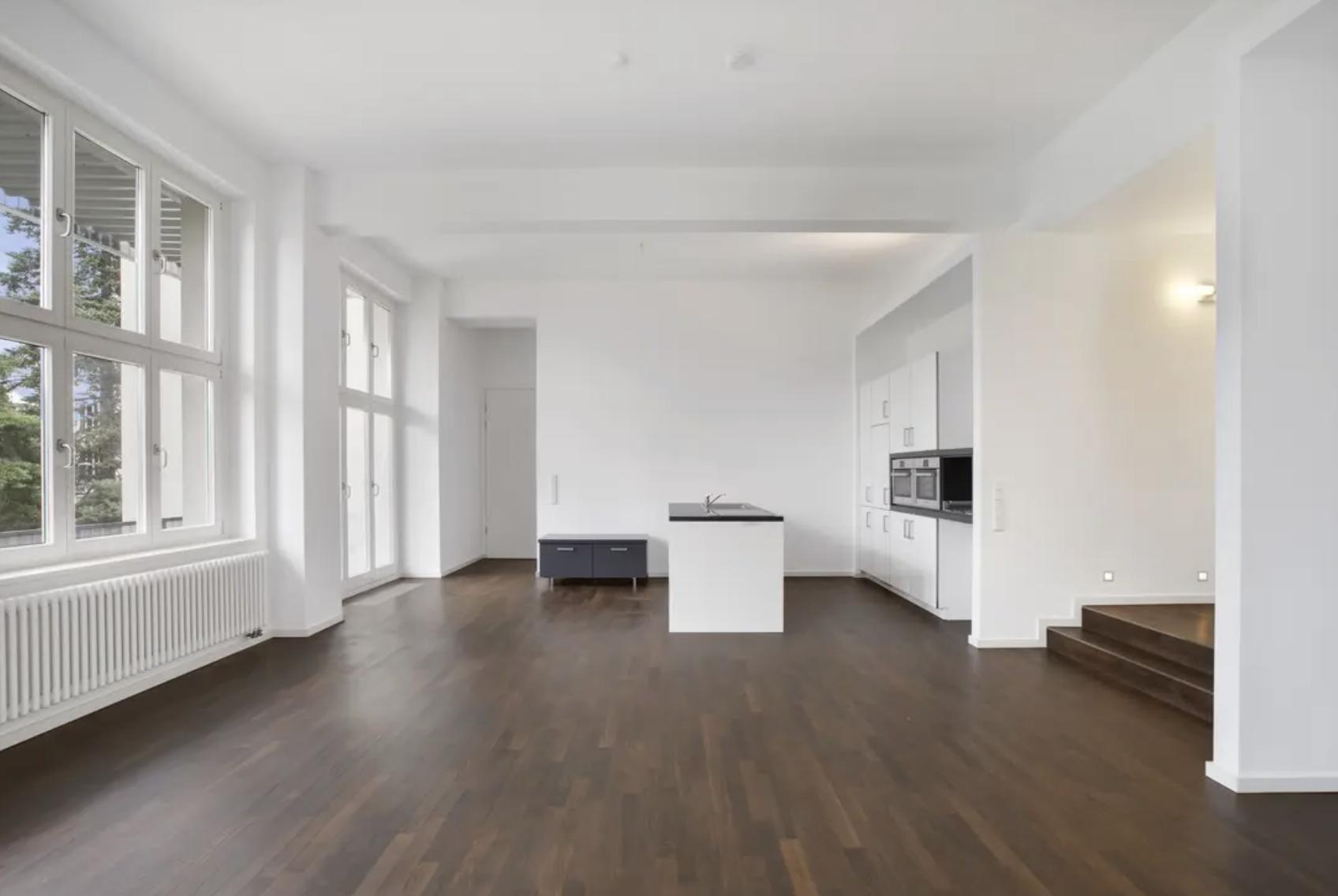 Vom Entree der Wohnung gelangen Sie direkt in den großzügigen Wohn- und Essbereich, in dem bereits eine hochwertige Einbauküche mit Markengeräten und Kochinsel integriert ist. Der rund 45 qm große Raum ist durch eine große Fensterfront lichtdurchflutet. Eines der bodentiefen Fensterelemente führt auf den ca. 9,50 qm großen Balkon, der zum ruhigen Innenhof ausgerichtet ist.